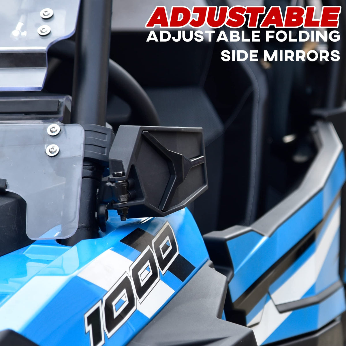 SAUTVS Center Convex Rearview Mirror and Adjustable Folding Side Rear View Mirrors Kit for Polaris RZR XP XP4 1000 Turbo S 4 100
