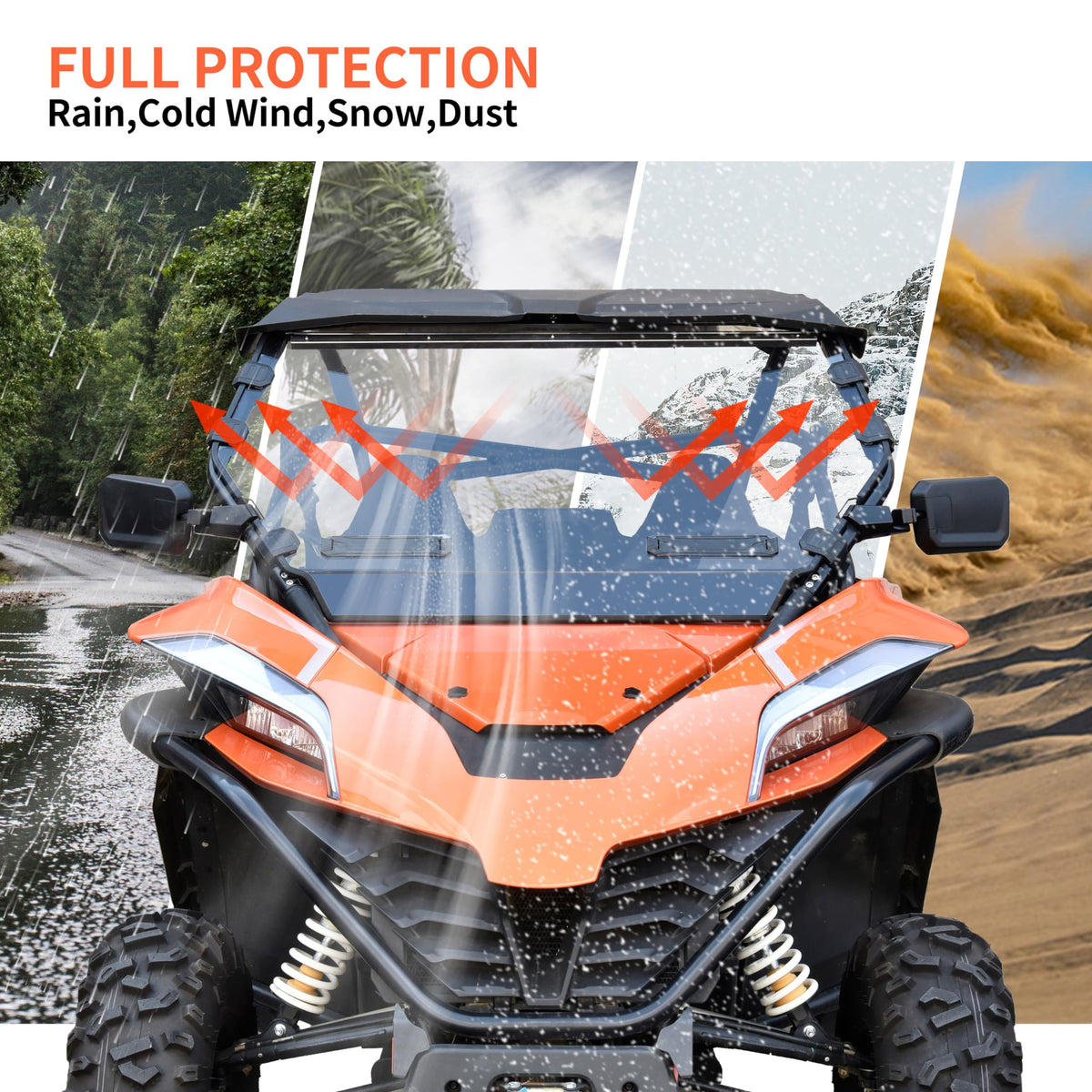 SAUTVS Full Windshield for CFMOTO ZForce 950 20-24, Hard Coat Poly Clear Vented Front Full Windscreen for CFMOTO ZForce 950 H.O.