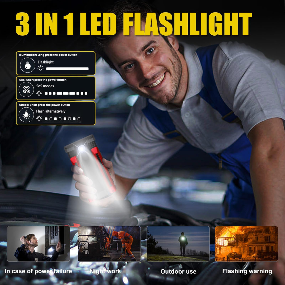 Q: Does the Scatach 002 come with any additional features?A: Yes, the Scatach 002 features a built-in LED display to show the battery status, a 3-mode flashlight for emergencies, and a compact design for easy portability. It's an all-in-one solution for jump-starting and emergency lighting.