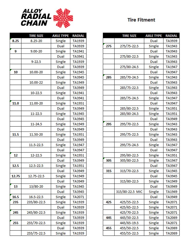 SCC TA1949 Alloy Radial Heavy Duty Truck Singles Tire Traction Chain - Set of 2