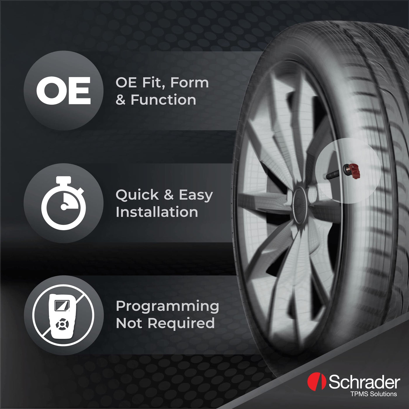 Schrader Is The Global Leader In Both Oe And After Market Tpms Sensors. Schrader Has Been Supplying Oe Tpms Sensors Since 1997, Well Before Tpms Was Mandated By The Tread Act. Schrader Supplies Oe Quality Tpms Sensors, Service Kits And Tools To The Tire Service Provider Who Wants To Be At The Forefront In Tpms Service. Schrader Revolutionized Tpms With The Markets First Programmable Sensor In 2008, And Has Further Changed The Market With A Single Programmable Sensor, Covering 314.9, 315 And 433 Mhz Applications. Schrader Enables Shops Of All Sizes To Participate In The Profit Building Benefits Of Tpms. The Schrader Programmable Sensor Is Everything You Need In A Tpms Sensor Combined Into One Easy To Program, Oe Quality Sensor That Comes With Both Clamp-In And Snap-In Stem Options.