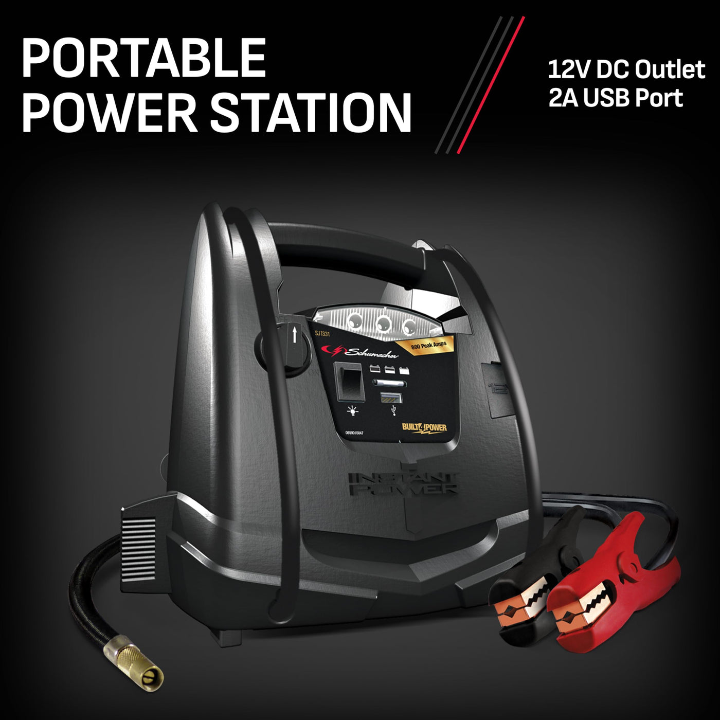 Schumacher SJ1331 Rechargeable AGM Jump Starter - 800 Amps, Air Compressor, 12V DC/USB Power Station for Gas/Diesel Vehicles