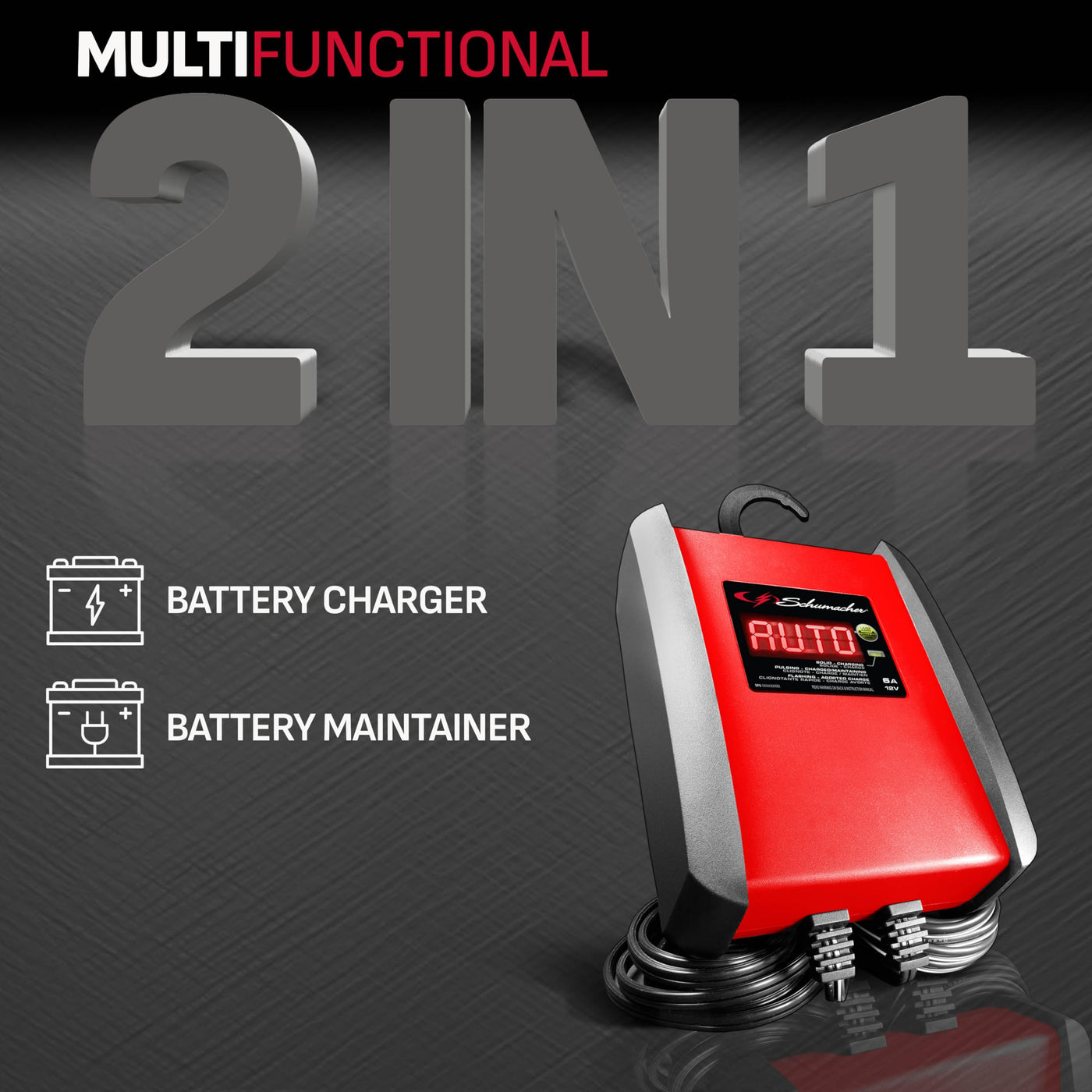 Schumacher SP1298 6 Amp Fully Automatic Battery Charger & Maintainer for Cars, Motorcycles, Lawn Tractors, Marine - Red