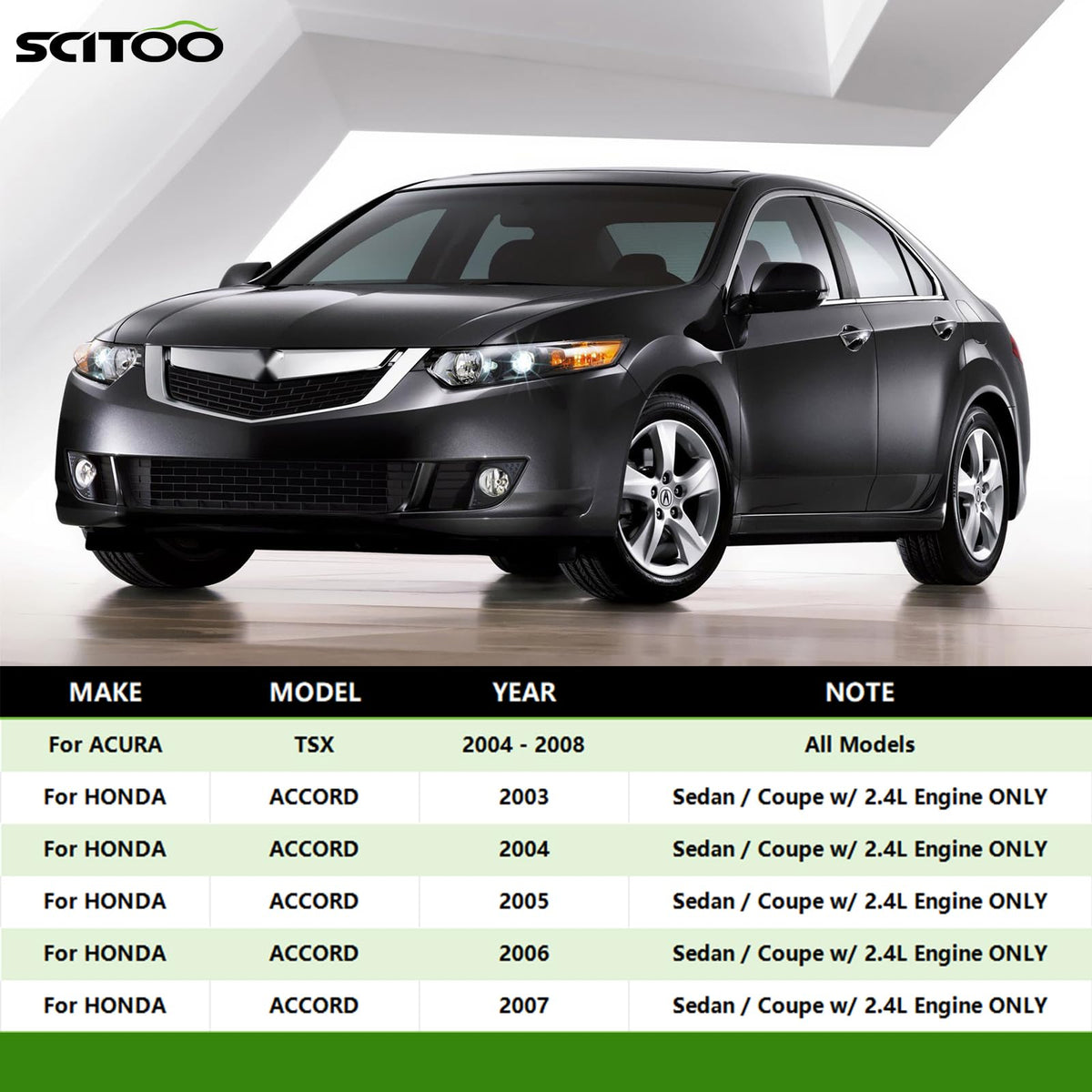 Compatibility Listfor ACURA TSX 2.4L 2004 2005 2006 2007 2008for Honda for Accord 2.4L 2003 2004 2005 2006 2007Attention Check the details or use the Year / Make / Model drop-down list and part number to confirm compatibility.