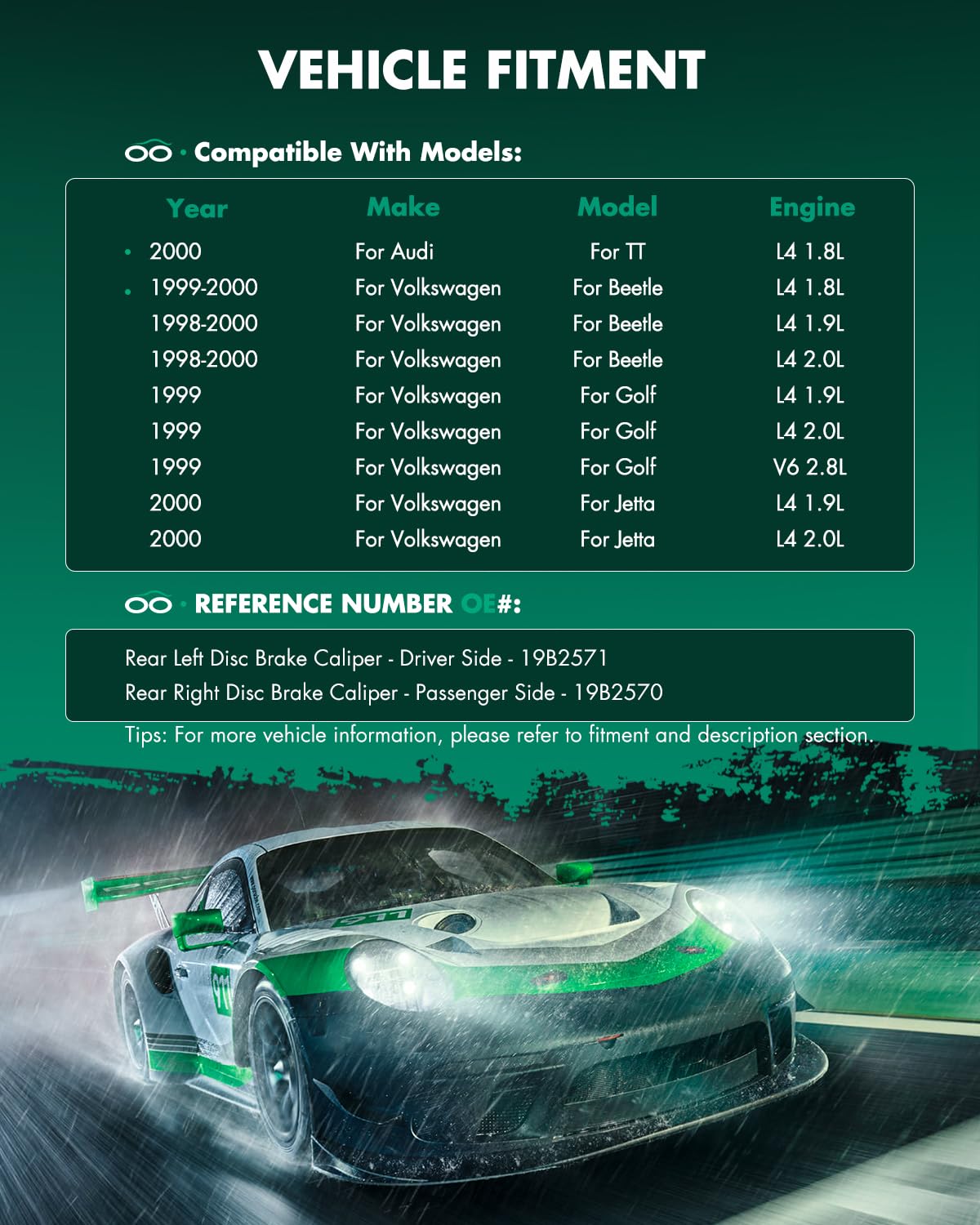 Scitoo 19B2571 19B2570 Rear Left & Right Disc Brake Calipers Assembly W/Bracket For Audi For Tt 2000,For Volkswagen For Beetle 1