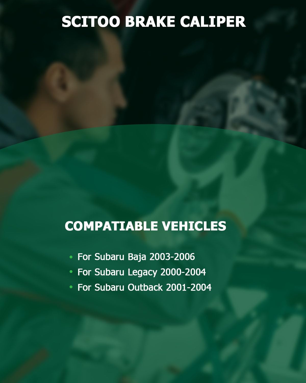 ?Compatible Vehicles?: Replacement For Subaru For Baja H4 2.5L 2003-2006,For Subaru For Legacy H4 2.5L 2000-2004,For Subaru For Outback H4 2.5L 2000-2004,For Subaru For Outback H6 3.0L 2001-2004 | ?Product Informations?: ?1PCS Disc Brake Caliper Assembly; ?Installation Position - Rear Driver Side; ?OE Number - 19B2583; ?Bracket - With; ?Piston Material - | ?Product Specifications?: ?Brake Piston Count - 1 Piston; ?Piston Diameter - 1.5 Inch(38mm); ?Inlet Port Size - M10 x 1.0; ?Bleeder Port Size - M7 x 1.0 | ?Product Features?: SCITOO Brake Calipers are coated and multiple tests, meet or exceed OE standard. You will get the best performance and durability, whatever the conditions | ?Direct Installation?: With mounting hardware, designed to provide quick and easy installation without modification