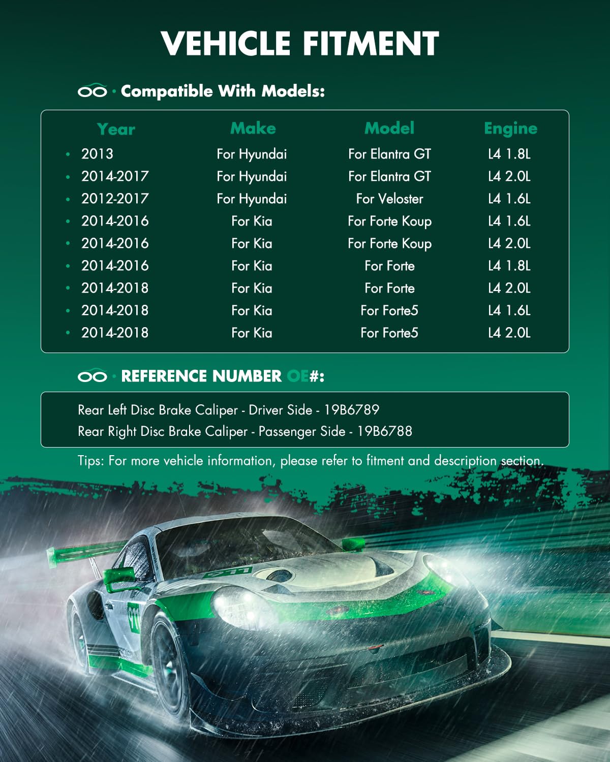Scitoo 19B6789 19B6788 Rear Left & Right Disc Brake Calipers Assembly W/Bracket For Hyundai For Elantra Gt/For Veloster,For Kia