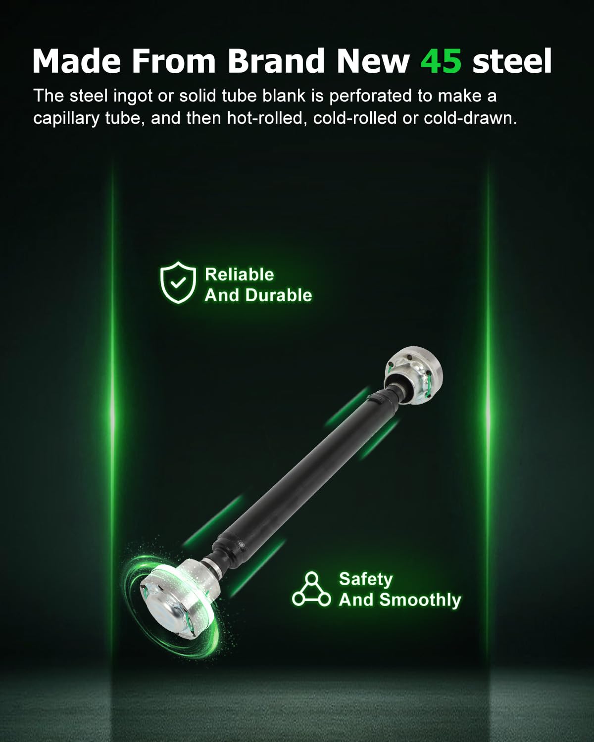 Q: How does this driveshaft improve my vehicle's performance?A: This driveshaft efficiently transmits the power generated by the engine, enhancing your vehicle’s driving power and reducing energy consumption.