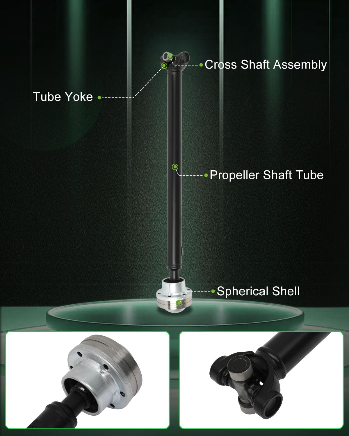 Q: What are the key features of this drive shaft assembly?A: This drive shaft assembly features high strength and toughness for long service life, high precision for stable and efficient power transmission, and a total length of 28.39" with a shaft diameter of 2". It is designed to efficiently transmit engine power while reducing energy consumption.
