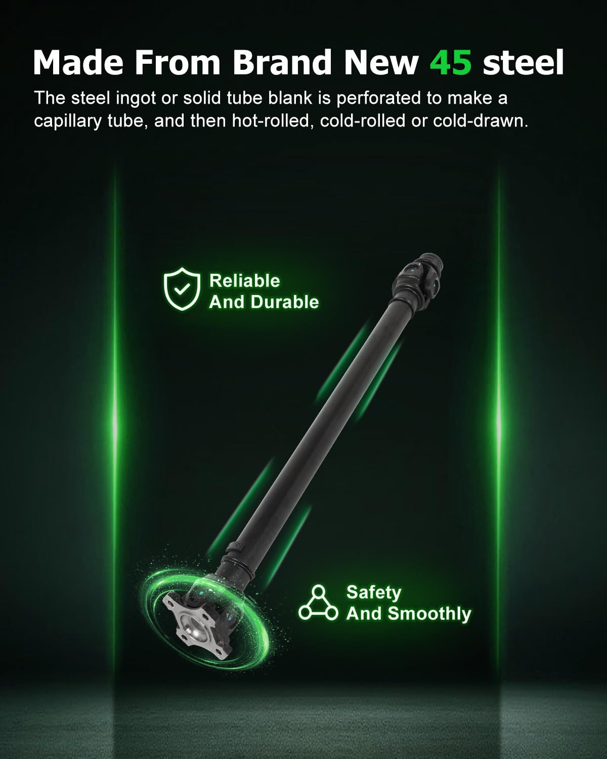 Q: How does the SCITOO driveshaft improve vehicle performance?A: This driveshaft efficiently transmits power generated by the engine, enhancing driving power and reducing energy consumption, which contributes to better overall vehicle performance.