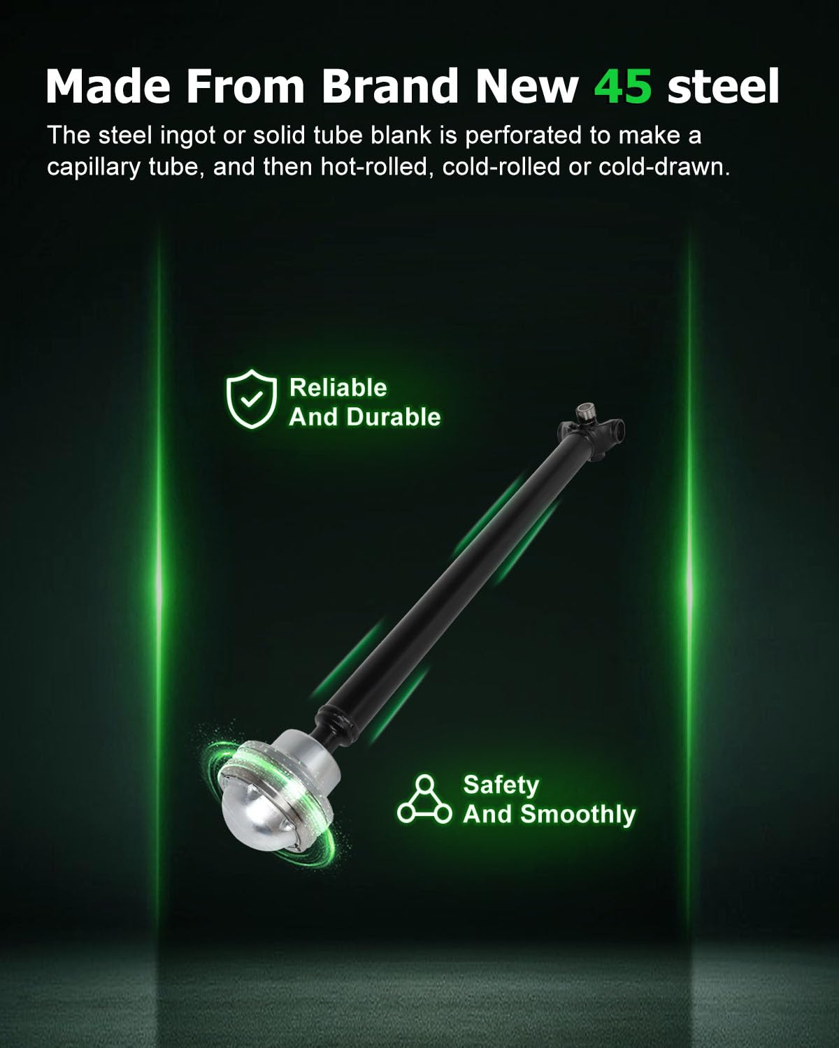 Q: What materials are used in the SCITOO Drive Shaft?A: The SCITOO Drive Shaft is made from high-quality materials, specifically featuring a beaded construction that meets high production standards for strength and durability. This ensures a long service life and reliable performance.