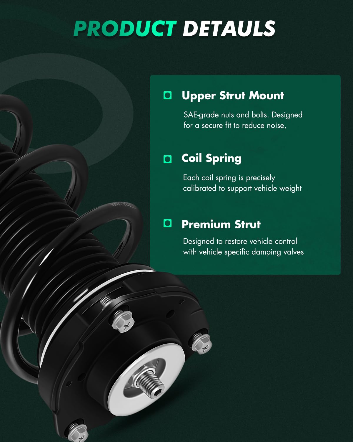 ?Strut Spring Assembly Fitment?2009-2017 For Volkswagen Tiguan | ?Reference OE Number?2Pcs Complete Struts Assembly 11090 | ?Features?Our shock absorber are precisely calibrated to meet the OE design, each application-specific coil spring type is engineered to restore ride height and support the vehicle's weight | ?Excellent service?If you have any problems during the installation or use, then get in touch with us, we will supply you with professional technical support | ?Note?SCITOO Auto supply for most cars,SUVs,trucks and with Struts Complete Assembly.Please select your vehicle (year/make/model/trim) in the top left corner of the page to confirm compatibility or refer to the vehicle information in the description