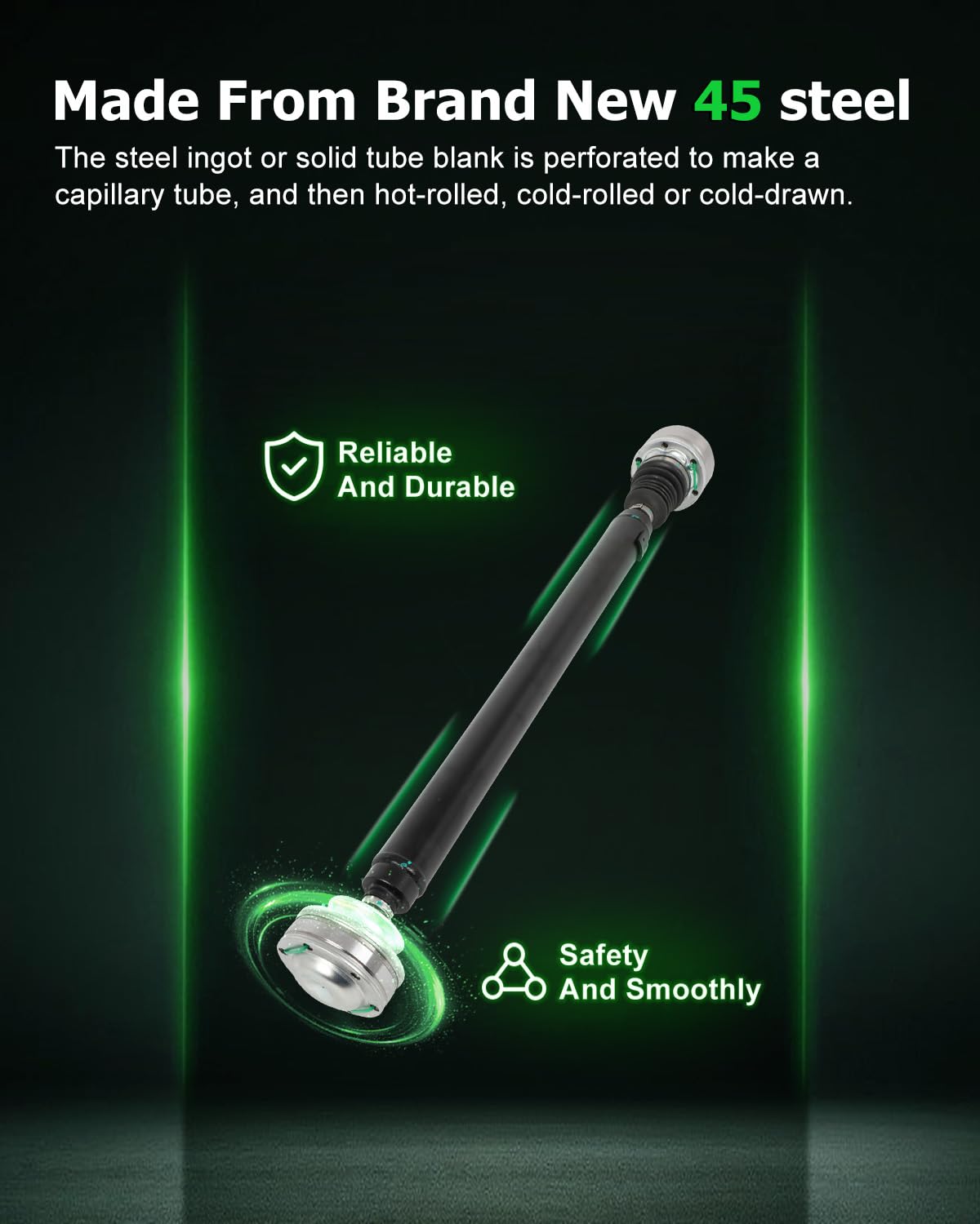 Q: How does the SCITOO Driveshaft improve vehicle performance?A: The SCITOO Driveshaft is designed to efficiently transmit power generated by the engine, enhancing overall vehicle performance and driving power while reducing energy consumption.