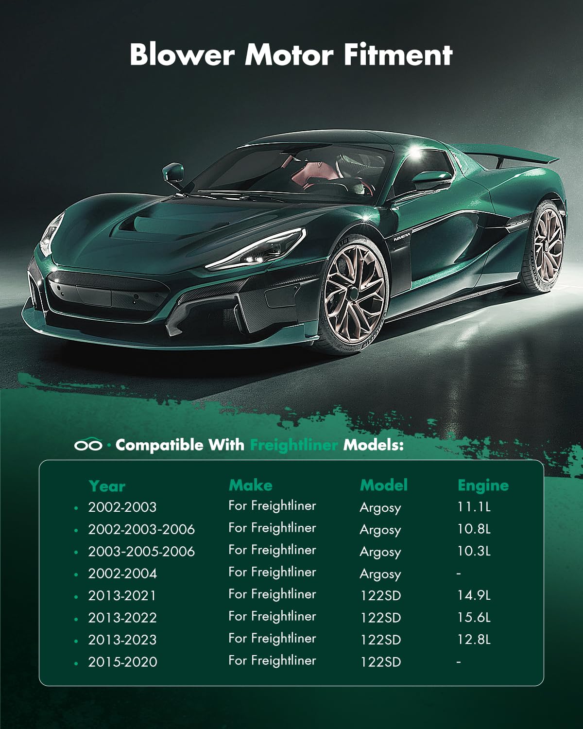 FIT THE FOLLOWING VEHICLES:2015-2020 For Freightliner For 122SD2013-2022 For Freightliner For 122SD 15.6L2013-2023 For Freightliner For 122SD l6 12.8L2013-2021 For Freightliner For 122SD l6 14.9L2002-2004 For Freightliner For Argosy2002-2004 For Freightliner For Argosy 12.0L2002-2003 For Freightliner For Argosy 15.0L2003 2005-2006 2008 For Freightliner For Argosy l6 10.3L2002-2003 2006 For Freightliner For Argosy l6 10.8L2002-2003 For Freightliner For Argosy l6 11.1L2002-2009 For Freightliner For Argosy l6 12.7L2002-2010 For Freightliner For Argosy l6 14.0L2002-2006 2008 For Freightliner For Argosy l6 14.6L2002-2003 2007-2008 For Freightliner For Argosy l6 14.9L2003 For Freightliner For Argosy l6 15.8L2002 2004-2007 2009 For Freightliner For Century Class2002-2004 For Freightliner For Century Class 12.0L2004-2009 For Freightliner For Century Class 12.5L2002 For Freightliner For Century Class l4 8.5L2002-2004 For Freightliner For Century Class l6 10.3L2002-2003 For Freightliner For Century Class l6 10.8L2002 For Freightliner For Century Class l6 11.1L2002-2007 For Freightliner For Century Class l6 12.7L2002-2011 For Freightliner For Century Class l6 12.8L2002-2011 For Freightliner For Century Class l6 14.0L2002-2009 For Freightliner For Century Class l6 14.6L2002-2003 For Freightliner For Century Class l6 15.8L2004 For Freightliner For Century Class l6 6.4L2008-2010 For Freightliner For Classic2003-2004 For Freightliner For Classic 12.0L2004-2007 For Freightliner For Classic 12.5L