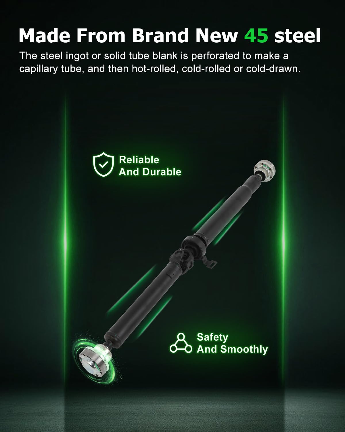 Q: How does the driveshaft assembly improve vehicle performance?A: This driveshaft assembly efficiently transmits the power generated by the engine, enhancing your vehicle's driving power and reducing energy consumption, which leads to improved overall performance.