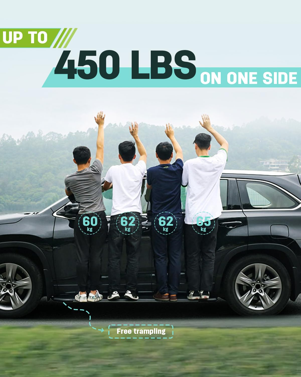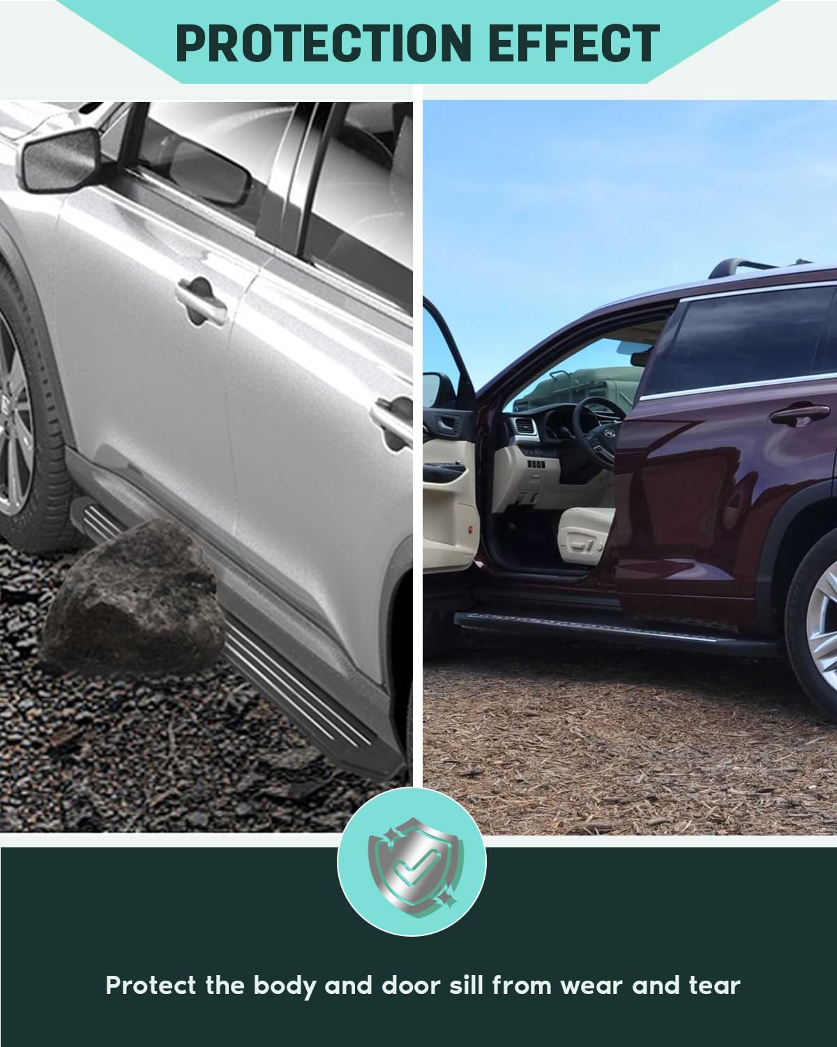 Q: Do these running boards provide any safety features?A: Yes, the SCITOO Nerf Bars come with a non-slip step pad that enhances grip, making it easier and safer for passengers to enter and exit the vehicle, especially in wet conditions.