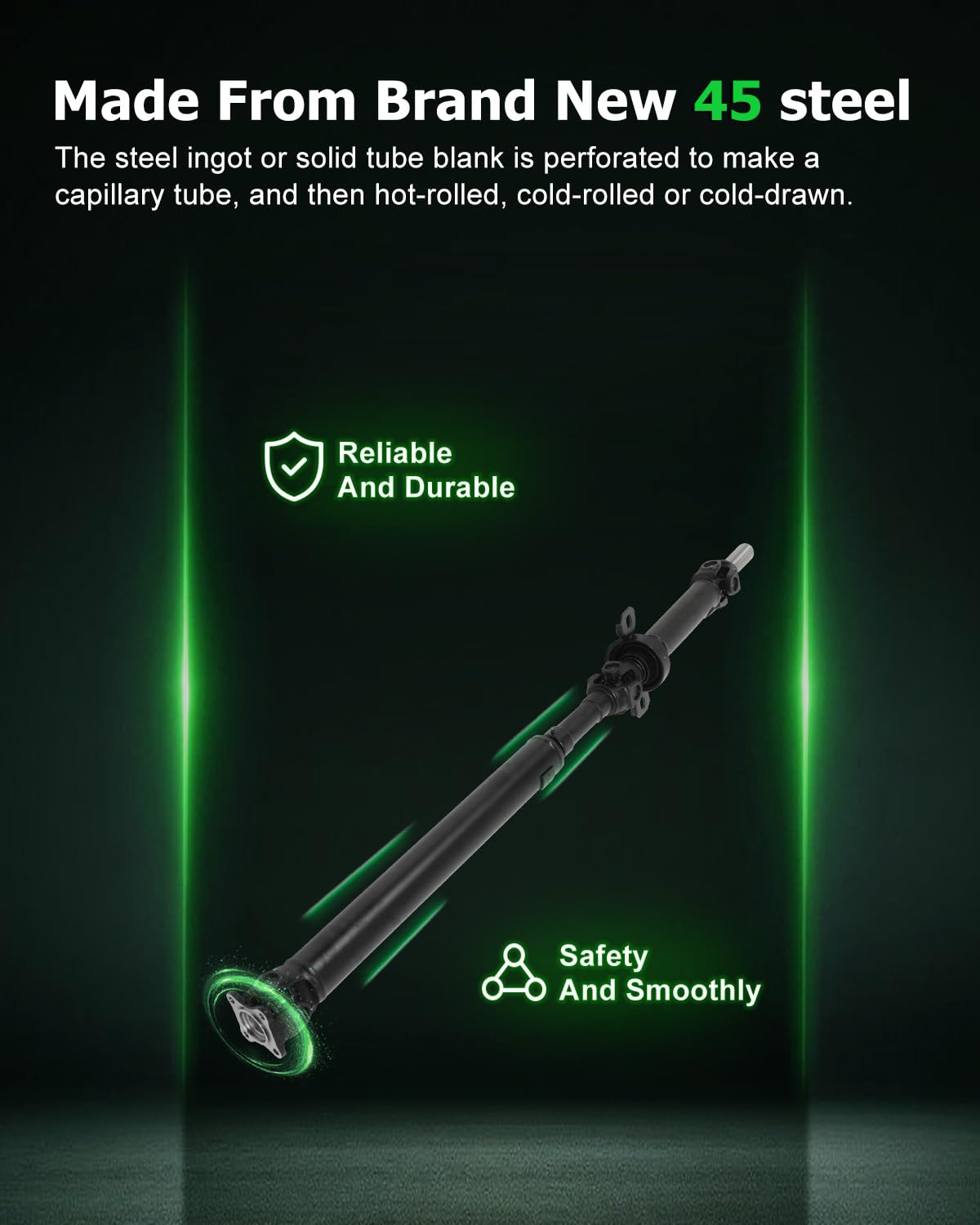 Q: What materials are used in the construction of this drive shaft?A: The drive shaft is made from high-quality steel, which ensures strength and durability, providing long service life and optimal performance.