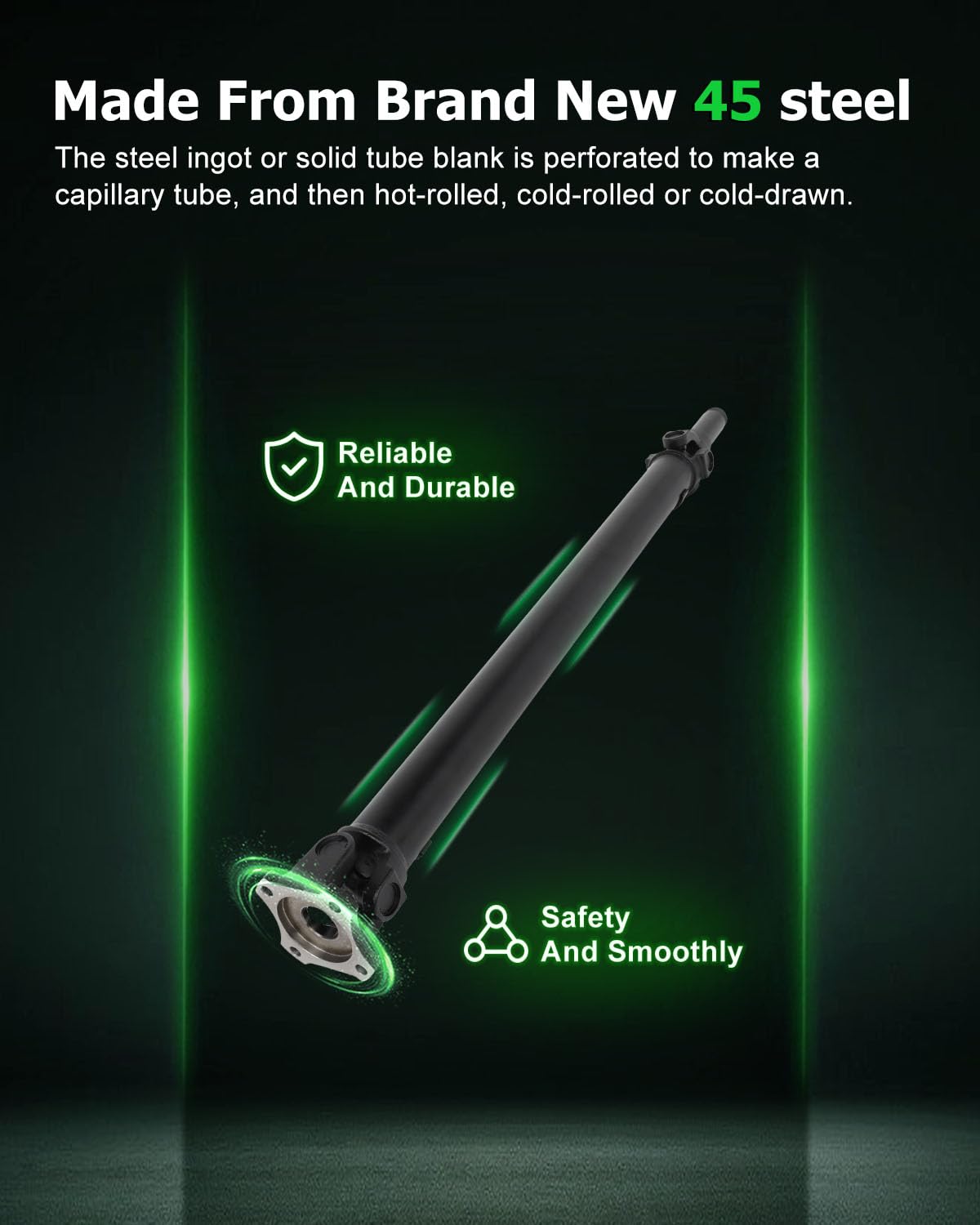 Q: What are the dimensions and specifications of this drive shaft?A: The SCITOO Drive Shaft has a total length of 62.5 inches, a shaft diameter of 3.25 inches, and a shaft wall thickness of 0.065 inches. It is designed to meet high production standards for strength and precision.