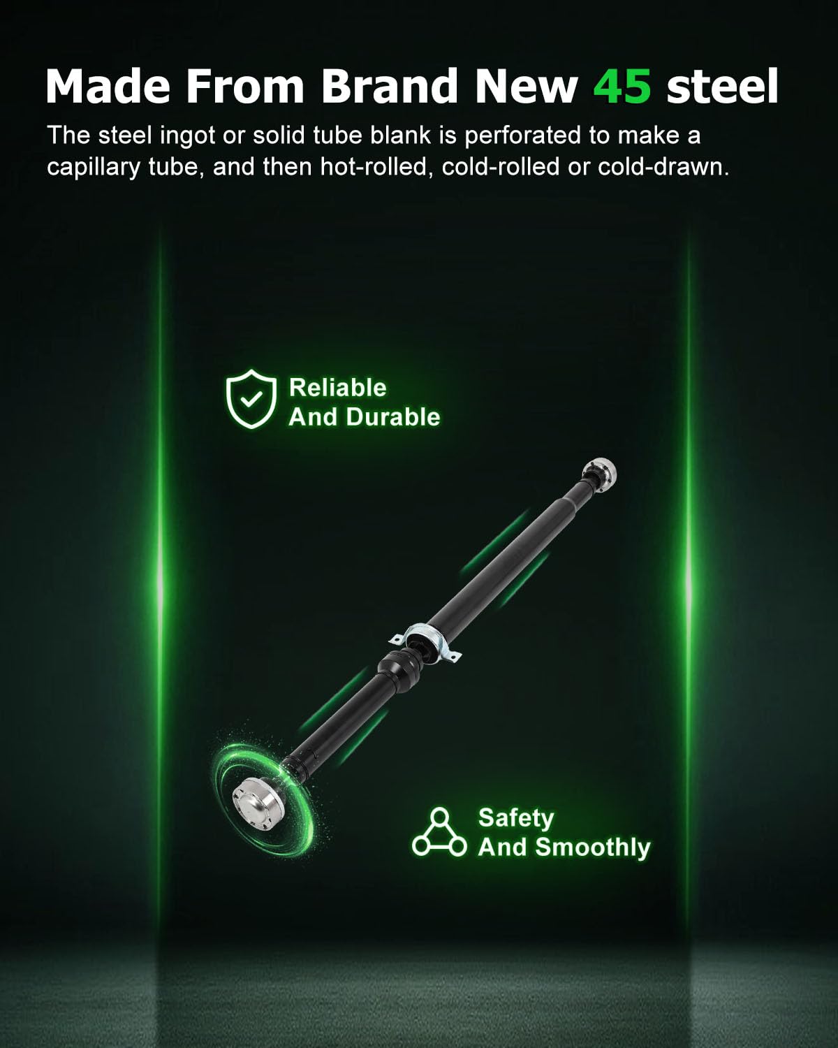 Q: What makes this driveshaft suitable for high performance?A: This driveshaft is engineered with high strength and precision requirements to ensure it transmits torque efficiently at high speeds, providing outstanding performance and durability for your Jeep.
