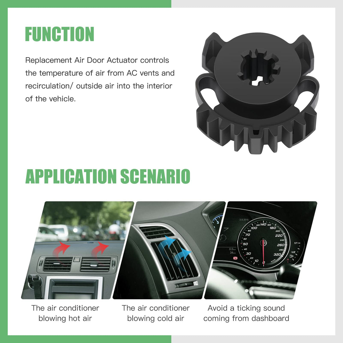 Description:Color:BlackReplace Part Number:68214880AA, 926-133Door Actuator Gear Kit Fit:2011 2012 2013 2014 2015 2016 for JEEP GRAND CHEROKEE, 2011 2012 2013 2014 2015 2016 2017 for DODGE DURANGONotice:If you are not sure whether the item fit your vehicles, please contact us for help.Package Including:1Pack Air Door Actuator Gear Kit