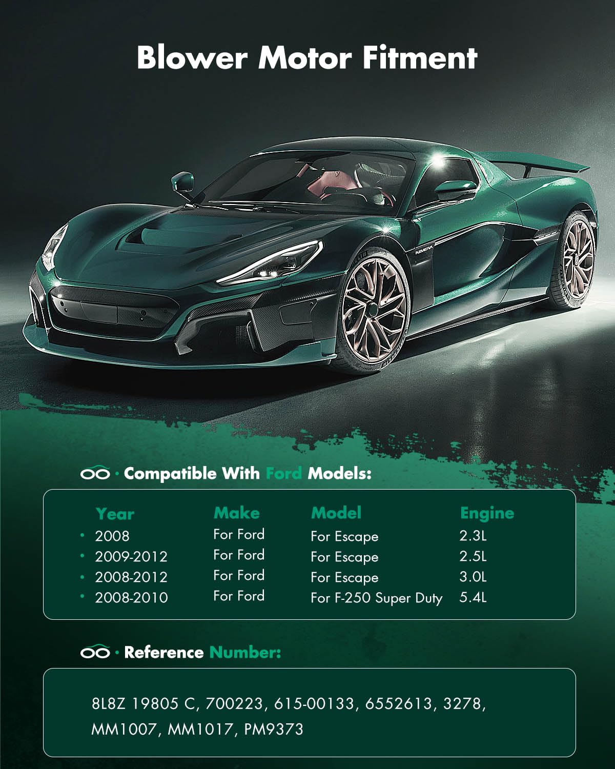 FIT THE FOLLOWING VEHICLES:2008 For Ford For Escape l4 2.3L2009-2012 For Ford For Escape l4 2.5L2008-2012 For Ford For Escape V6 3.0L2008-2010 For Ford For F-250 Super Duty V10 6.8L2008-2010 For Ford For F-250 Super Duty V8 5.4L2008-2010 For Ford For F-250 Super Duty V8 6.4L2008-2010 For Ford For F-350 Super Duty V10 6.8L2008-2010 For Ford For F-350 Super Duty V8 5.4L2010 For Ford For F-350 Super Duty V8 6.2L2008-2010 For Ford For F-350 Super Duty V8 6.4L2008 2010 For Ford For F-450 Super Duty V10 6.8L2008-2010 For Ford For F-450 Super Duty V8 6.4L2008-2010 For Ford For F-550 Super Duty V10 6.8L2008-2010 For Ford For F-550 Super Duty V8 6.4L2008 For Mercury For Mariner l4 2.3L2009-2011 For Mercury For Mariner l4 2.5L2008-2011 For Mercury For Mariner V6 3.0L
