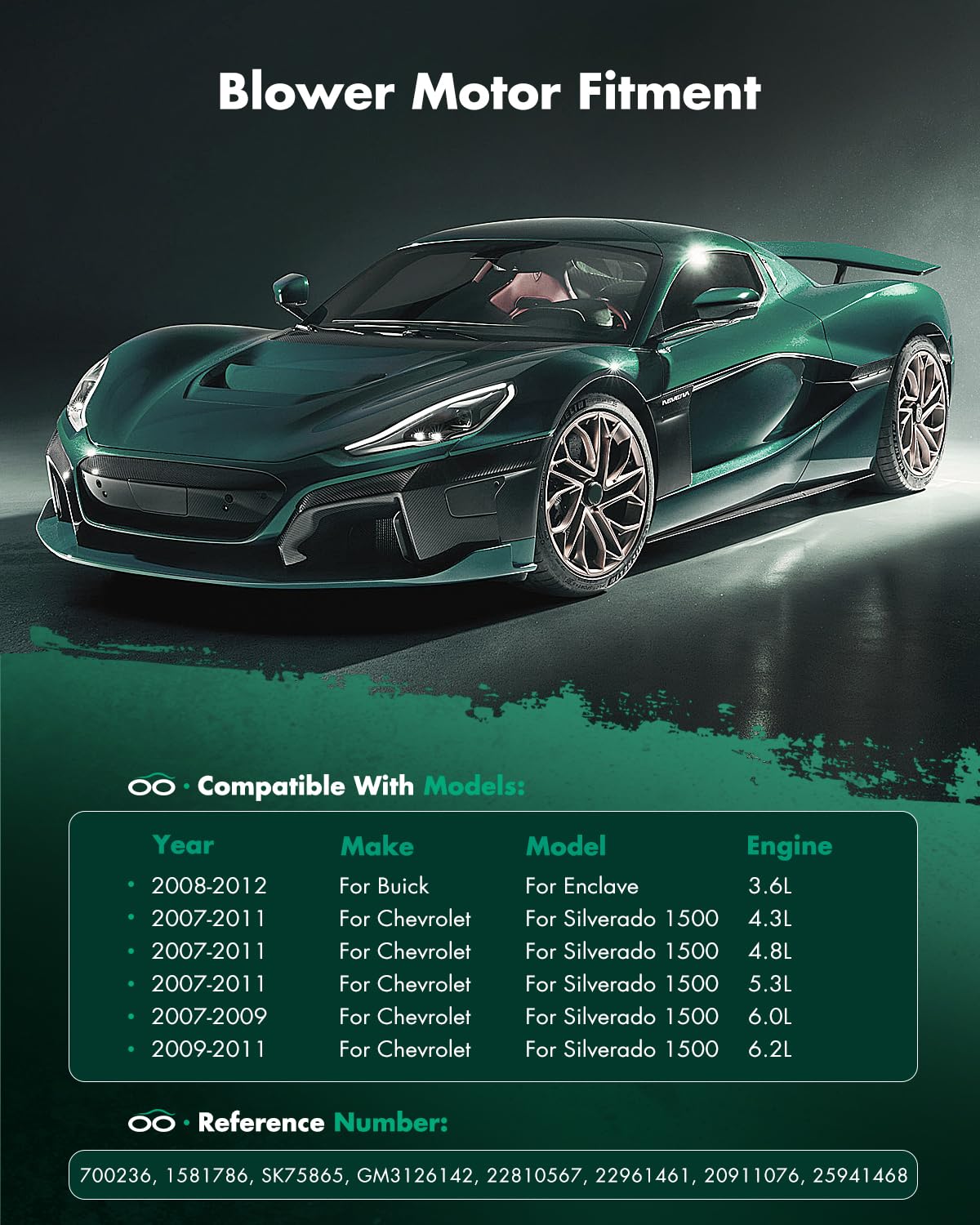 Scitoo 700236 Front Hvac Blower Motor With Fan Cage For Buick 2008-2012,For Chevy 2007-2012,For Gmc 2007-2012,For Saturn 2007-20