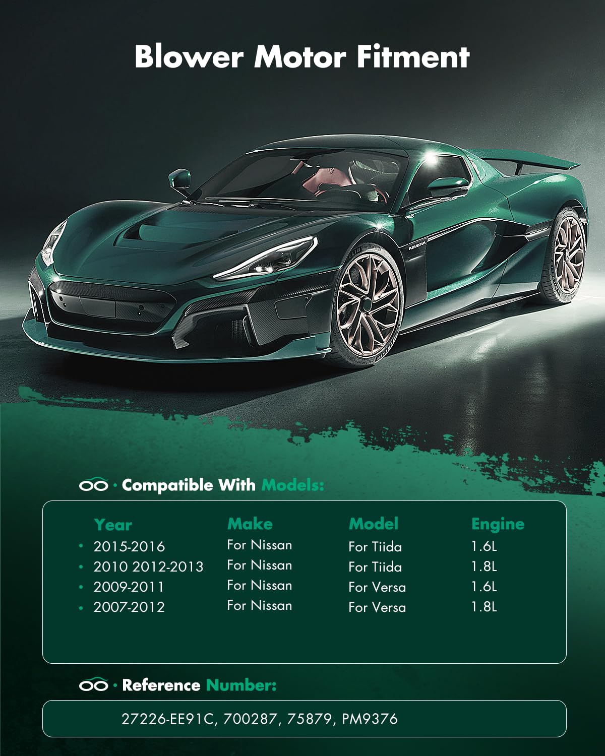 Scitoo 700287 Front Hvac Blower Motor With Fan Cage For Nissan For Tiida 2007 2008 2009 2013 2014 2015 2016 2017,For Nissan For