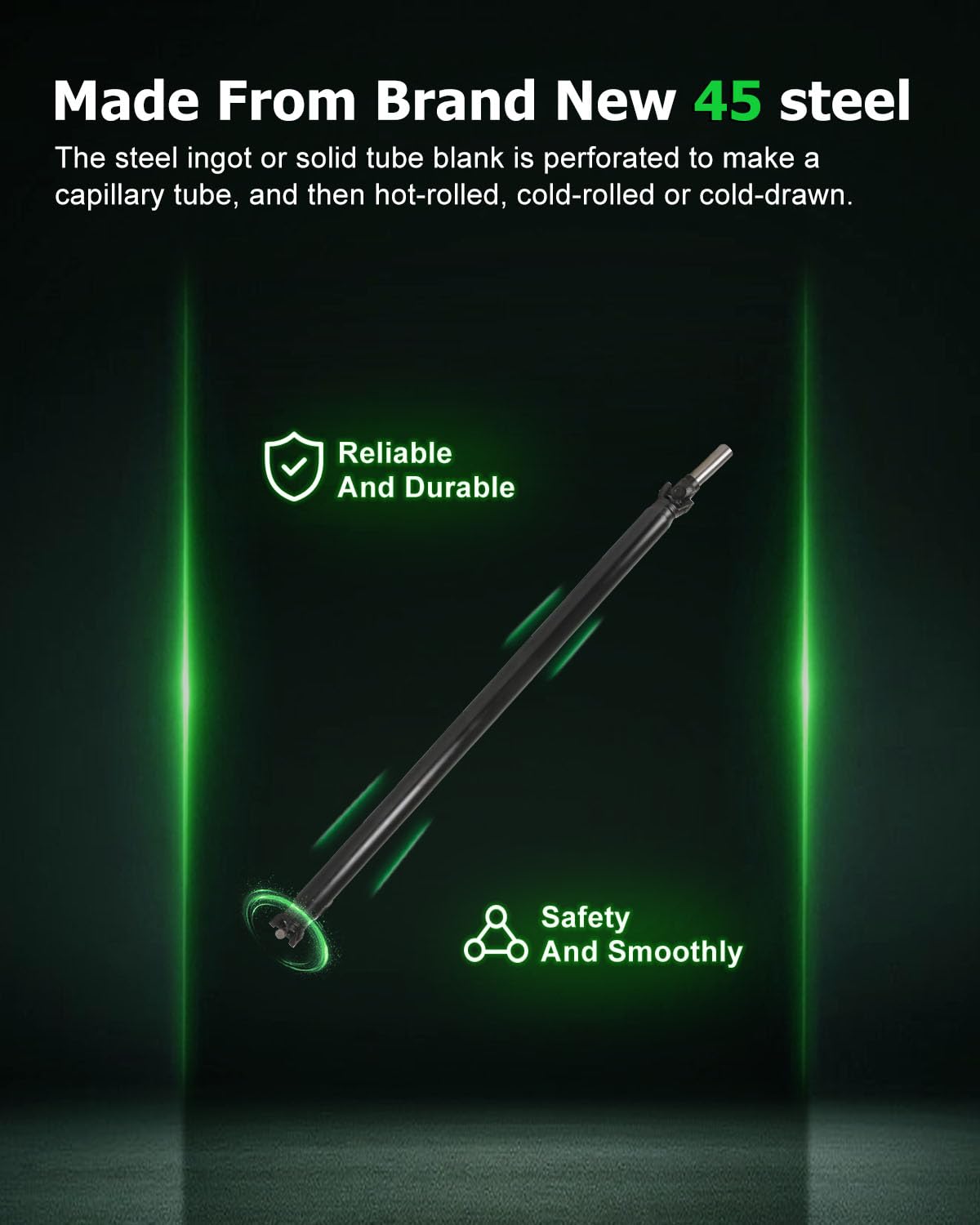Q: How does this drive shaft improve vehicle performance?A: This drive shaft is designed to efficiently transmit power generated by the engine, enhancing your vehicle's driving power while reducing energy consumption. Its high strength and precision ensure stability and efficiency during operation.