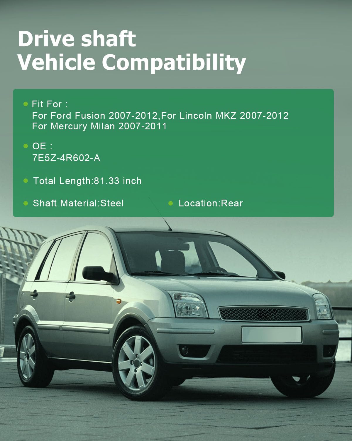 Q: What vehicles are compatible with the SCITOO Rear Drive Shaft Assembly?A: The SCITOO Rear Drive Shaft Assembly is compatible with Ford Fusion models from 2007 to 2012, Lincoln MKZ models from 2007 to 2012, and Mercury Milan models from 2007 to 2011. Always verify your vehicle's year, make, and model using the part finder tool before purchasing.