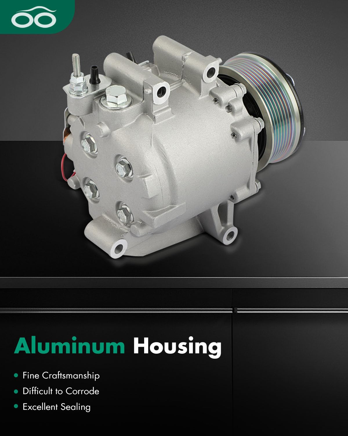 Vehicle Compatibility: 2006 2007 2008 2009 2010 2011 Air Conditioner AC Compressor for Honda Civic 1.8L | Replaces Partnumber: CO4918AC, CO 4918AC, 38800RNAA010M2, 4717054, 97555, 98555, 638880, 38810RNAA01, 38810RNAA02, 38800RZVG022M2, 38810RNA014, 38810RNA024, 38800RNAA010M, ACC0950, CB310P20, CB550P10, 6512349, C1804R, CB386P20, CB310P10. | Specifications: Compressor Type: TRSE07; Oil Type: PAG46; Pulley Grooves Quantity: 7; Material: Aluminum Alloy; Clutch Included: Yes; Oil Prefilled: 160 ml; Pulley Diameter (mm): 10 | Rapid Cooling: With the strong compressed pressure produced by this AC compressor, the conditioner system can quickly provide cold air to make you feel relaxed and comfortable during the trip. (Warm Notes: The item is with oil when sent to you, so there is no need to add oil when you use it the first time. But you need to add the refrigerant, please add them to 70-80%, dont need to fill up.) | Energy Saving: Our AC compressor kit works efficiently under low noise and tiny vibration to provide you a super cool trip. Driving at a stable speed will help reduce fuel consumption.SCITOO air conditioner ac compressor is mainly made of high-strength aluminum alloy which ensures reliable performance and a long service life | CO4918AC, CO 4918AC, 38810RNAA01, 38810RNAA02, 38800RZVG022M2, 38800RNAA010, 38800RNAA010M, 38800RNAA010M2, 38800RZVG020M2, 38810RNA004, 38810RNA014, 38810RNA024, 38810RZVG, IG555, IH555, ACC0950, LX2885, 140950NEW, 3766C, MS306P10, 2004918AM, CB310P20, CB386P20, CB310P10, C1804R, CR2037000S, CB550P10, 97555, 98555, 89247, 638880, 10361921, 7512349, 4717054, 5512349, 255528, 2021929R, 6512349.