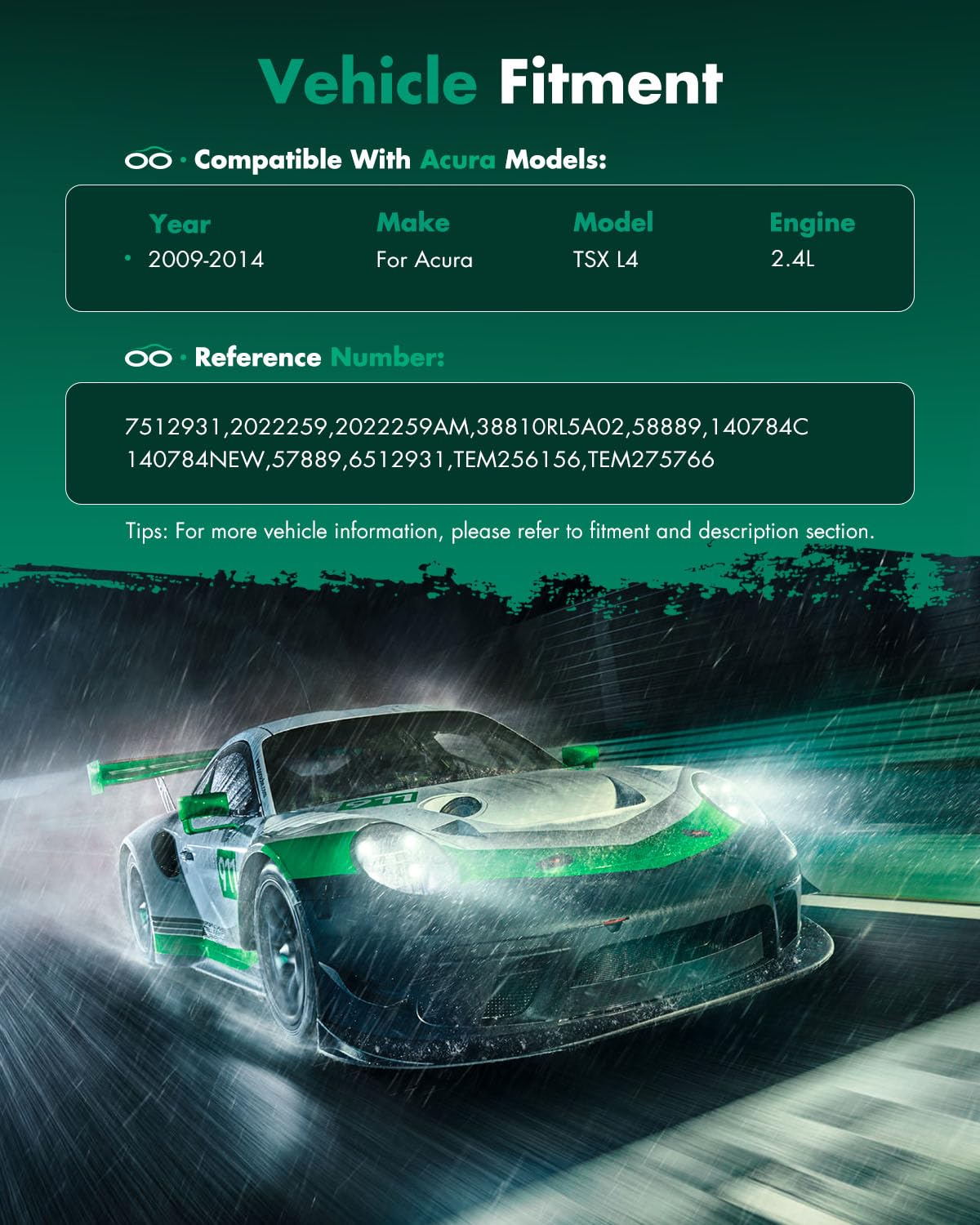 AC Compressor: 2009-2014 Fit for Acura TSX 2.4L Please clean The cooling system pipe of the your car ,Before installing the compressor. The oil content of itself can already meet the normal operation of the ac compressor. If the oil is added to the load, it will cause the compressor to vibrate or be damaged