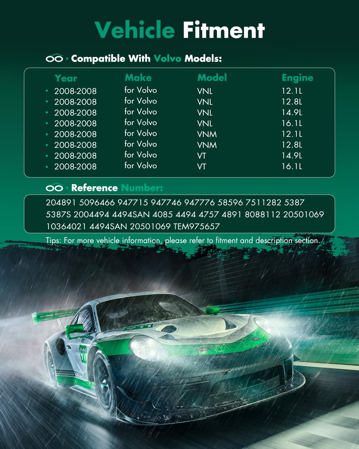 Vehicle Compatibility: 2008-2008 for Volvo VNL 12.1L;2008-2008 for Volvo VNL 12.8L;2008-2008 for Volvo VNL 14.9L;2008-2008 for Volvo VNL 16.1L;2008-2008 for Volvo VNM 12.1L;2008-2008 for Volvo VNM 12.8L;2008-2008 for Volvo VT 14.9L;2008-2008 for Volvo VT 16.1L | Replaces Partnumber: 204891 5096466 947715 947746 947776 58596 7511282 5387 5387S 2004494 4494SAN 4085 4494 4757 4891 8088112 20501069 10364021 4494SAN 20501069 TEM97565 | Specifications: Compressor Type: SD7H15; Oil Type: PAG46; Pulley Grooves Quantity: 6; Material: Aluminum Alloy; Clutch Included: Yes; Oil Prefilled: 160 ml; Pulley Diameter (mm): 13 | Rapid Cooling: With the strong compressed pressure produced by this AC compressor, the conditioner system can quickly provide cold air to make you feel relaxed and comfortable during the trip. Notes: The item is with oil when sent to you, so there is no need to add oil when you use it the first time. But you need to add the refrigerant, please add them to 70-80%, dont need to fill u | Energy Saving: Our AC compressor kit works efficiently under low noise and tiny vibration to provide you a super cool trip. Driving at a stable speed will help reduce fuel consumption.SCITOO compressor is mainly made of high-strength aluminum alloy which ensures reliable performance and a long service life