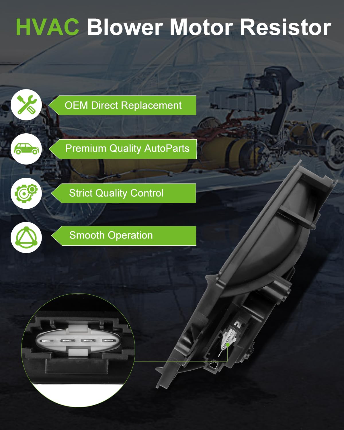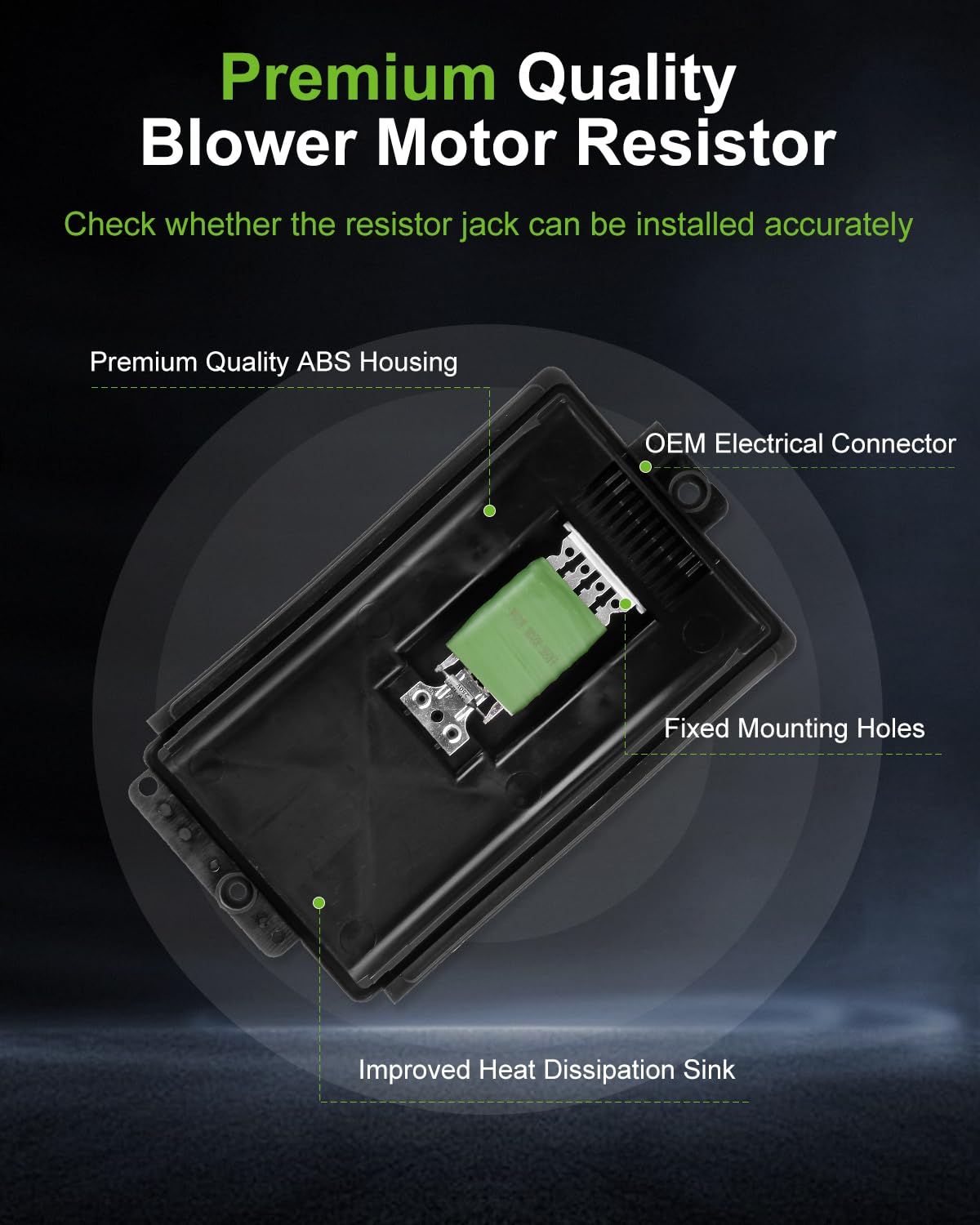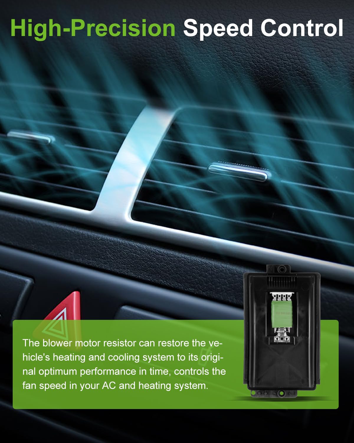 Q: What are the key benefits of using this blower motor resistor?A: This blower motor resistor helps restore your vehicle's heating and cooling system to optimal performance. It controls fan speed efficiently and features a durable design that prevents issues like thermal fuse failure and overheating.