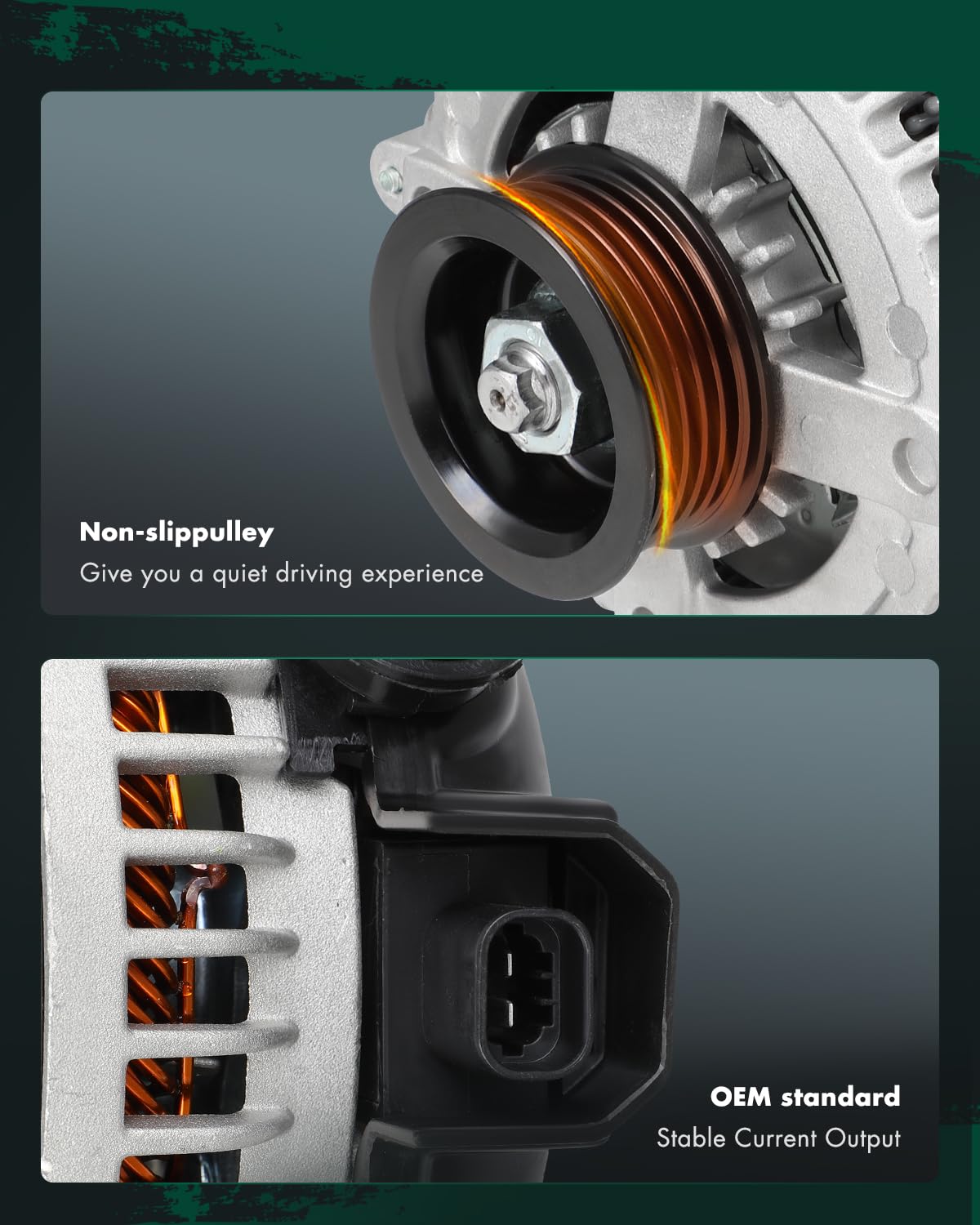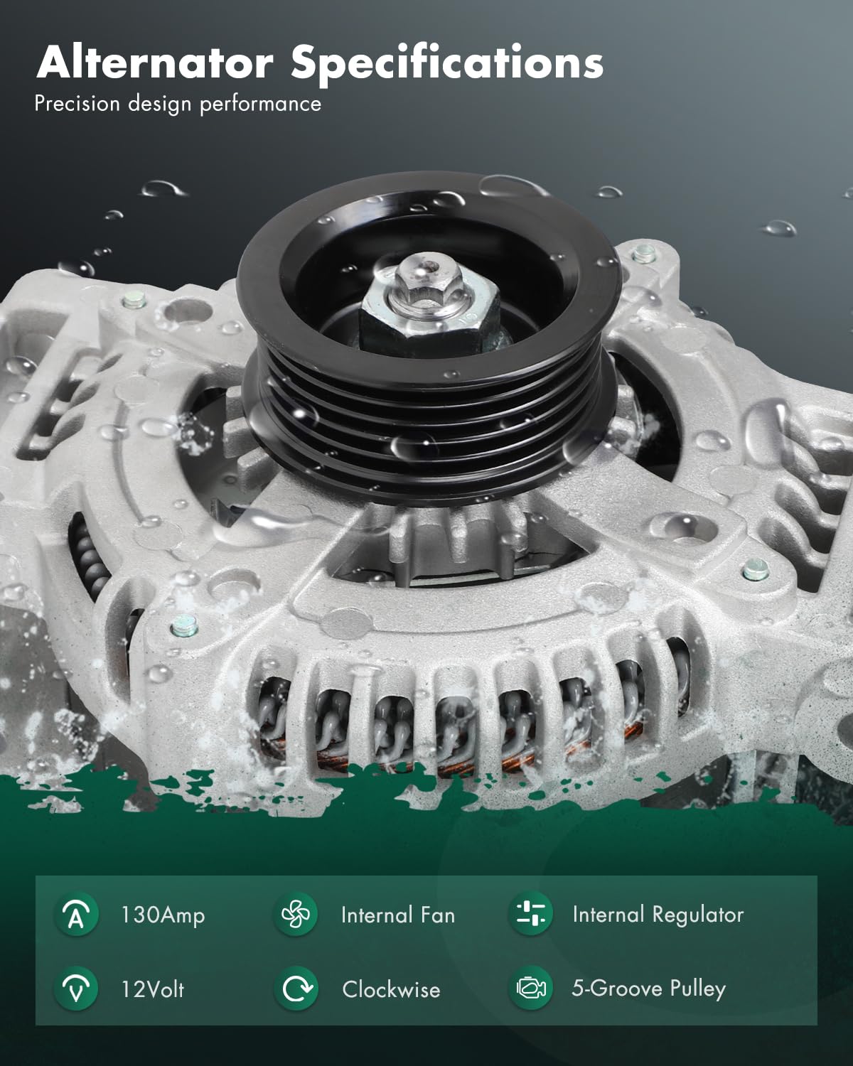 ?Alternator Fitment?- Automotive new alternator replacement for Chevrolet for Cobalt 2.2L 2005 2006,for Chevrolet for Cobalt 2.2L 2007,for Chevrolet for Cobalt 2.4L 2006,for Chevrolet for Cobalt 2.4L 2007,for Chevrolet for HHR 2.2L 2006,for Chevrolet for HHR 2.2L 2007,for Chevrolet for HHR 2.4L 2006,for Chevrolet for HHR 2.4L 2007,for Pontiac for G5 2.2L 2007,for Pontiac for G5 2.4L 2007,for Pontiac for Pursuit 2.2L 2005,for Pontiac for Pursuit 2.2L 2006,for Pontiac for Pursuit 2.4L 2006 | ?Alternators Specifications?- Voltage: 12V; Amperage: 130A; Rotation: CW(Clockwise); Regulator: IR ; Fan: IF; Grooves: 5-Groove Pulley; Condition: New, high output alternator is compact and lightweight, fully compatible with the electronic system of your vehicle | ?Car Alternator Reference Number?- 11140 104210-4420 AL8799X 10355395 1042104330 104210-4330 1042104420 104210-4420 11110 11110A 11140 11140A 11140N 12640 12652 15461 2100552 210-0552 211140 2-11140 2138766 213-8766 2139635 213-9635 22737105 2905215 290-5215 2905227 290-5227 3342624A 334-2624A 3611140 36-11140 40052145 400-52145 40052145R 400-52145R 90295555 90-29-5555 90295653 90-29-5653 A80190 A-80190 A80303 A-80303 AL8799X AL8804X AND0407 N11110 10355395 | ?Easy Installation?- (1) Be sure to disconnect the negative electrode of the battery; (2) When replacing, pay attention to the appropriate tension of the transmission belt: if too loose, it may slip and cause insufficient power generation; If too tight, it can easily damage the belt and alternator bearings; (3) When replacing, pay attention to tightening all screws. If you have any problems during use, then get in touch with us, we will supply you with professional technical support | ?Note?SCITOO Auto supply alternator for most cars, SUVs, trucks and trailers. Please select your vehicle (year/make/model/trim) in the top left corner of the page to confirm compatibility or refer to the vehicle information in the description