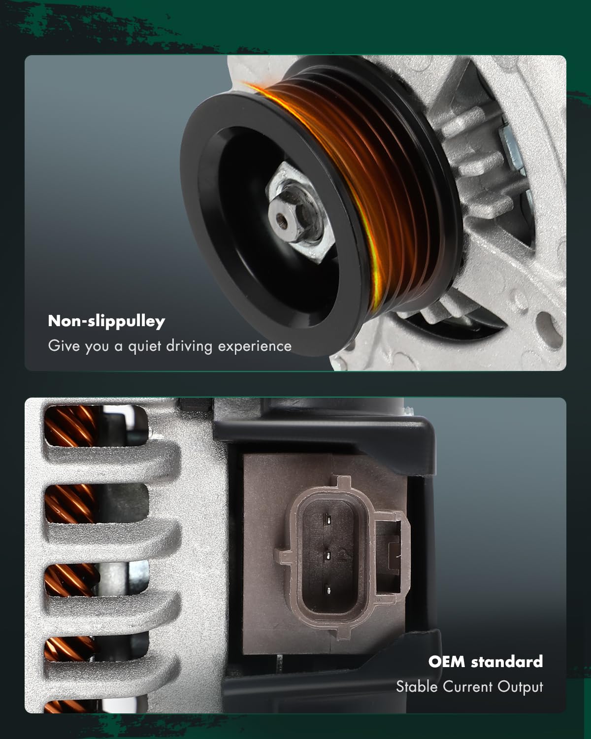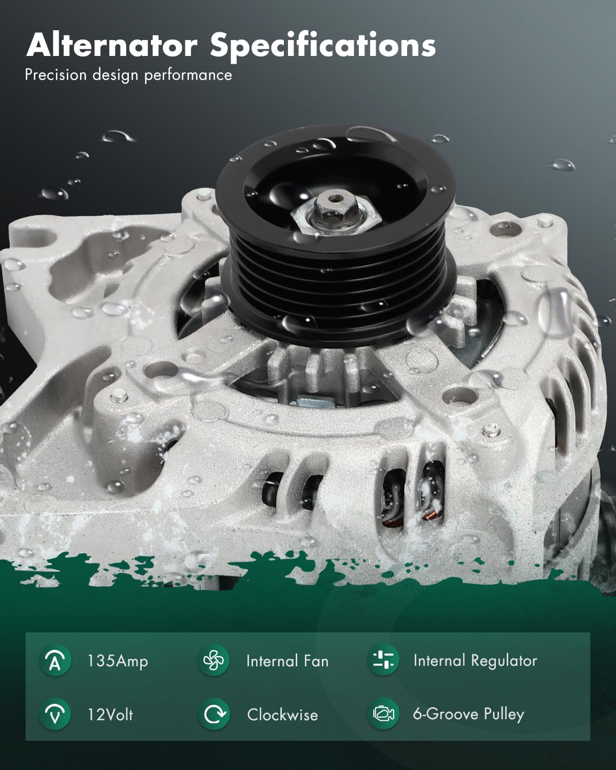 ?Alternator Fitment?- Automotive new alternator replacement for Ford for F-150 4.6L 2009,for Ford for F-150 4.6L 2010 | ?High-Performance Specifications? - Engineered with Voltage: 12V; Amperage: 135Amp; Rotation: CW (Clockwise); Regulator: IR (Internal Regulator) ; Fan: IF (Internal Fan); Grooves: 6-Groove Pulley; Condition: New, high output alternator is compact and lightweight, fully compatible with the electronic system of your vehicle, this automotive replacement alternator delivers reliable power for your car, it