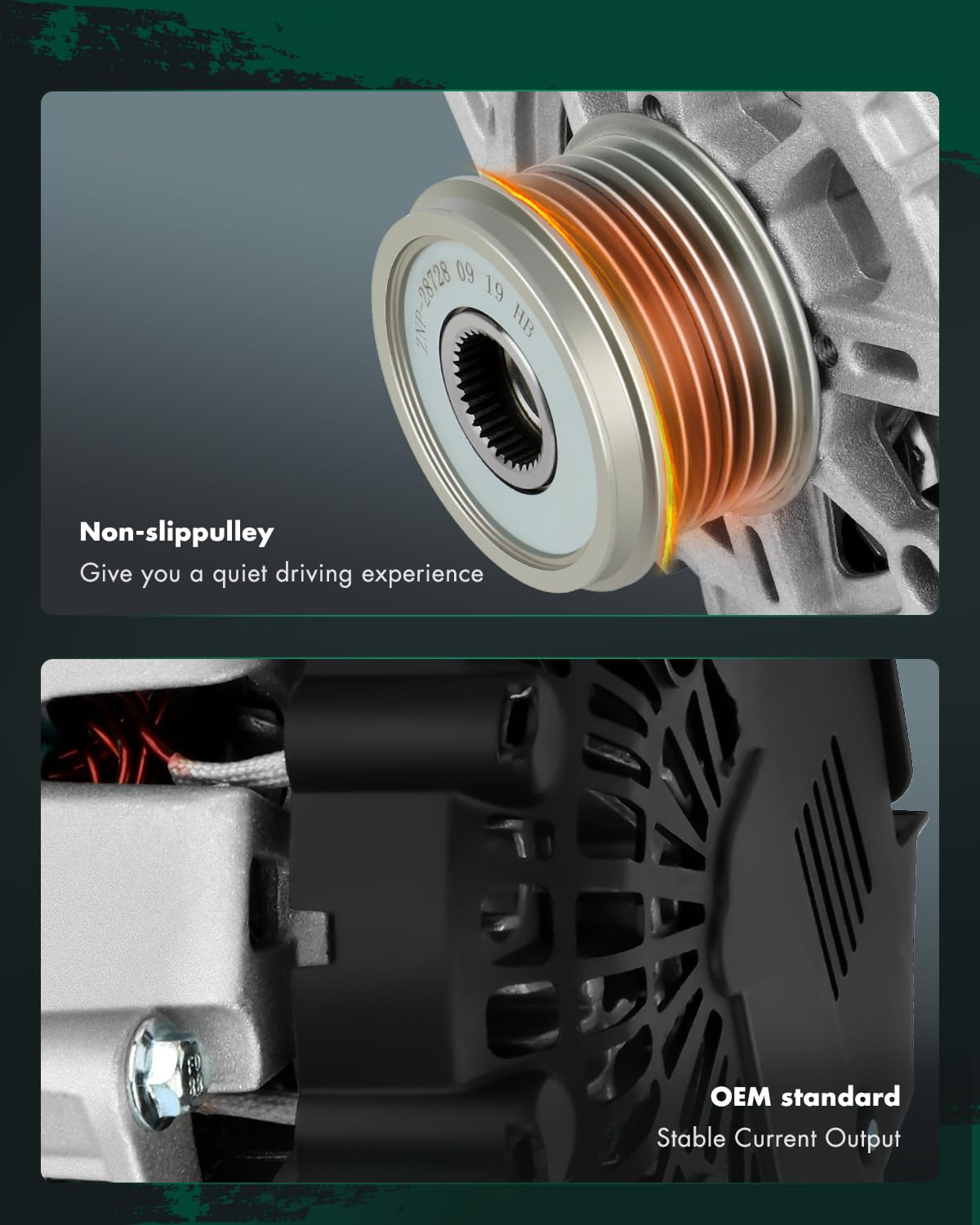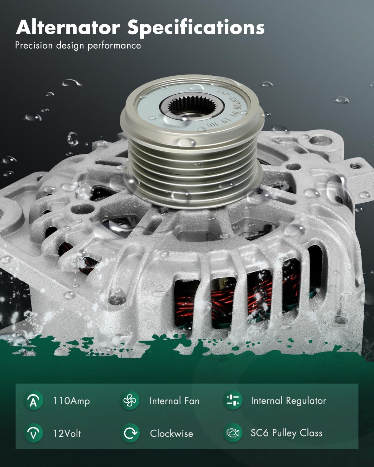 ?Alternator Fitment?- Automotive new alternator replacement for Nissan for Altima 2007-2012 L4 2.5L, for Altima 2013 L4 2.5L Coupe Only, Sentra 2007-2012 L4 2.5L, for Rogue 2011-2013 L4 2.5L, for Rogue Select 2014-2015 L4 2.5L | ?Alternators Specifications?- Voltage: 12V; Amperage: 110A; Rotation: CW(Clockwise); Regulator: IR ; Fan: IF; Grooves: SC6 Pulley Class; Condition: New, high output alternator is compact and lightweight, fully compatible with the electronic system of your vehicle | ?Car Alternator Reference Number?- Direct OEM replacement for your malfunctioning part, OE number : 23100-JA04D 23100-JA02A 23100-JA02B 23100-JA02C 23100-JA04C 208-201A 208-201C 11258 11458 11567 | ?Easy Installation?- (1) Be sure to disconnect the negative electrode of the battery; (2) When replacing, pay attention to the appropriate tension of the transmission belt: if too loose, it may slip and cause insufficient power generation; If too tight, it can easily damage the belt and alternator bearings; (3) When replacing, pay attention to tightening all screws. If you have any problems during use, then get in touch with us, we will supply you with professional technical support | ?Note?SCITOO Auto supply alternator for most cars, SUVs, trucks and trailers. Please select your vehicle (year/make/model/trim) in the top left corner of the page to confirm compatibility or refer to the vehicle information in the description
