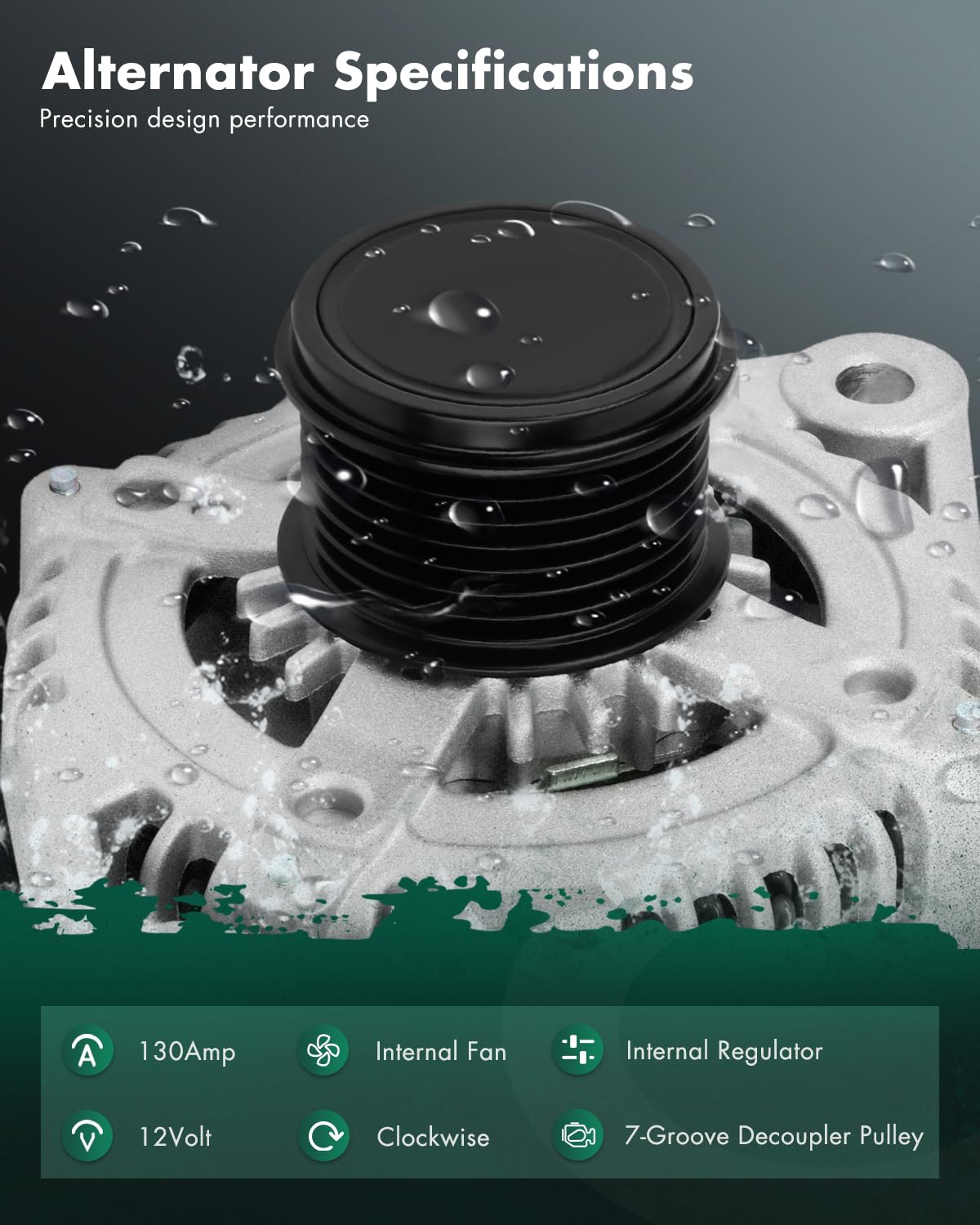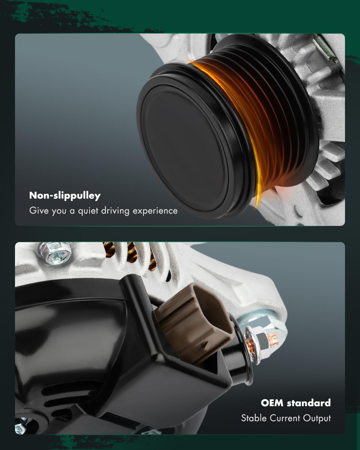 ?Alternator Fitment?- Automotive new alternator replacement for Lexus ES350 Base 3.5L 2007-18; RX350 Base 3.5L 2007; for Toyota for Avalon Limited 3.5L 2010-18; for Highlander Limited 3.5L 2010-13 | ?Alternators Specifications?- Voltage: 12V; Amperage: 130A; Rotation: CW(Clockwise); Regulator: IR ; Fan: IF; Grooves: 7-Groove Decoupler Pulley; Condition: New, high output alternator is compact and lightweight, fully compatible with the electronic system of your vehicle | ?Car Alternator Reference Number?- Direct OEM replacement for your malfunctioning part, OE number : 11137 104210-2100 104210-2101 104210-2104 104210-4890 104210-4570 104210-4571 104210-4573 27060-31110 27060-31111 27060-31111-84 27060-31112 27060-0P151-84 | ?Easy Installation?- (1) Be sure to disconnect the negative electrode of the battery; (2) When replacing, pay attention to the appropriate tension of the transmission belt: if too loose, it may slip and cause insufficient power generation; If too tight, it can easily damage the belt and alternator bearings; (3) When replacing, pay attention to tightening all screws. If you have any problems during use, then get in touch with us, we will supply you with professional technical support | ?Note?SCITOO Auto supply alternator for most cars, SUVs, trucks and trailers. Please select your vehicle (year/make/model/trim) in the top left corner of the page to confirm compatibility or refer to the vehicle information in the description