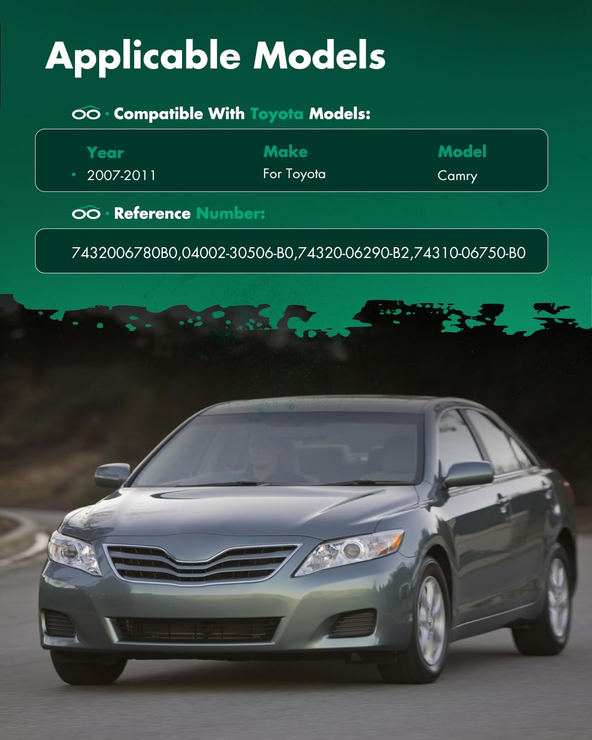 Fitment:Left Driver & Right Passenger Sides Sunvisor Replacement For 2007 2008 2009 2010 2011 For Toyota For Camry | Replace For:Part Number 7432006780B0,04002-30506-B0,74320-06290-B2,74310-06750-B0 Left Driver & Right Passenger Sides.Please check the number to fit your car before purchasing,and make sure the year,model,applicable information | Easy Installation:Precise mounting holes and snaps for a secure fit, no drilling or more screws without any damaging, you can replace your old sun visor directly, and you just need to snap the sun visor bracket into place with the car's bracket cover part to put it in the right place | Features:According to the original factory specifications.Built to strict quality control standards. Stable characteristics, high reliability. Aftermarket Products with Premium Quality | Buy with Confidence:Non-Infringement Disclaimer for Auto Parts Sales. Please note that all references to brand names and models are for compatibility purposes only and do not imply any affiliation or endorsement by the original manufacturer