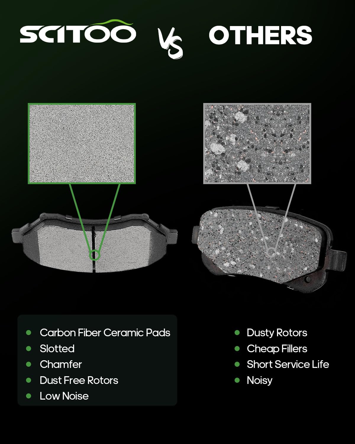 Q: Are SCITOO Ceramic Brake Pads noisy during operation?A: No, the SCITOO Ceramic Brake Pads are designed to minimize noise. Their unique slotting design improves drainage and heat distribution, which enhances stopping power while ensuring a quiet driving experience.