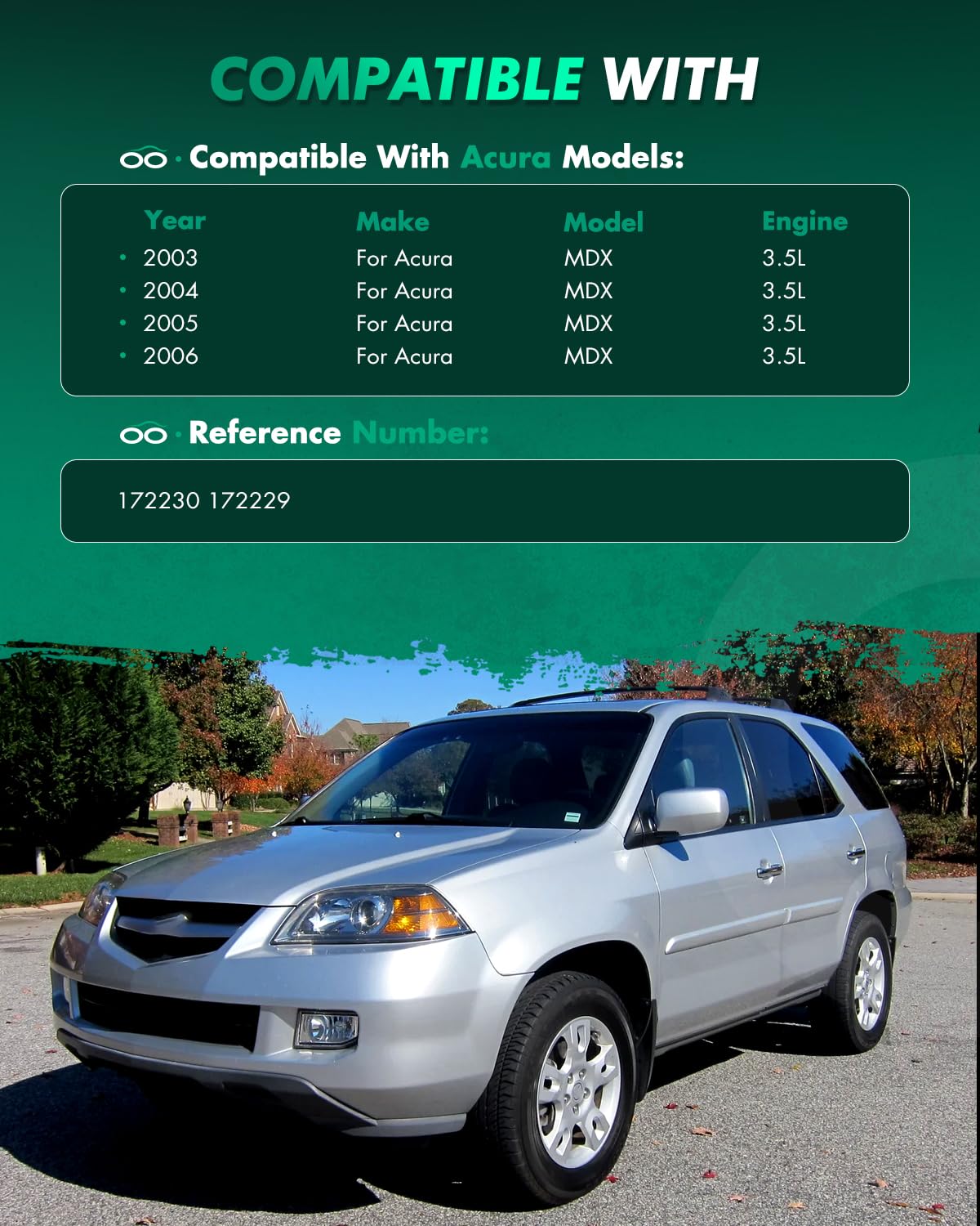 Fit For:2003-2006 For Acura Mdx Base Sport Utility 4-Door 3.5L2003-2006 For Acura Mdx Touring Sport Utility 4-Door 3.5Lwhat Does The New Struts Could Offer1.Reduce Abnormal Noiseabnormal Noise Aroused During The Driving Could Be Reduced,Which Provide You Comfortable Driving Experience 2.Reduce Fuel Consumptionthe Worn Between Tire And Chassis Could Be Reduced For Its Superior Aerodynamic Characteristics,Which Is More Economics In Fuel Consumption 3.Improve Corneringthe Situation Ofroll When Driving A Turn Could Be Ameliorated,It Is More Stable When Meet A Sharp Turn 4.Provide Effective Bufferingthe Car Body Shake During The Time You Driving Could Be Reduced By The Effective Buffering,Which Could Give Comfortable Feeling To Your Passenger Package Including:Front Pair Complete Struts(2Pcs)