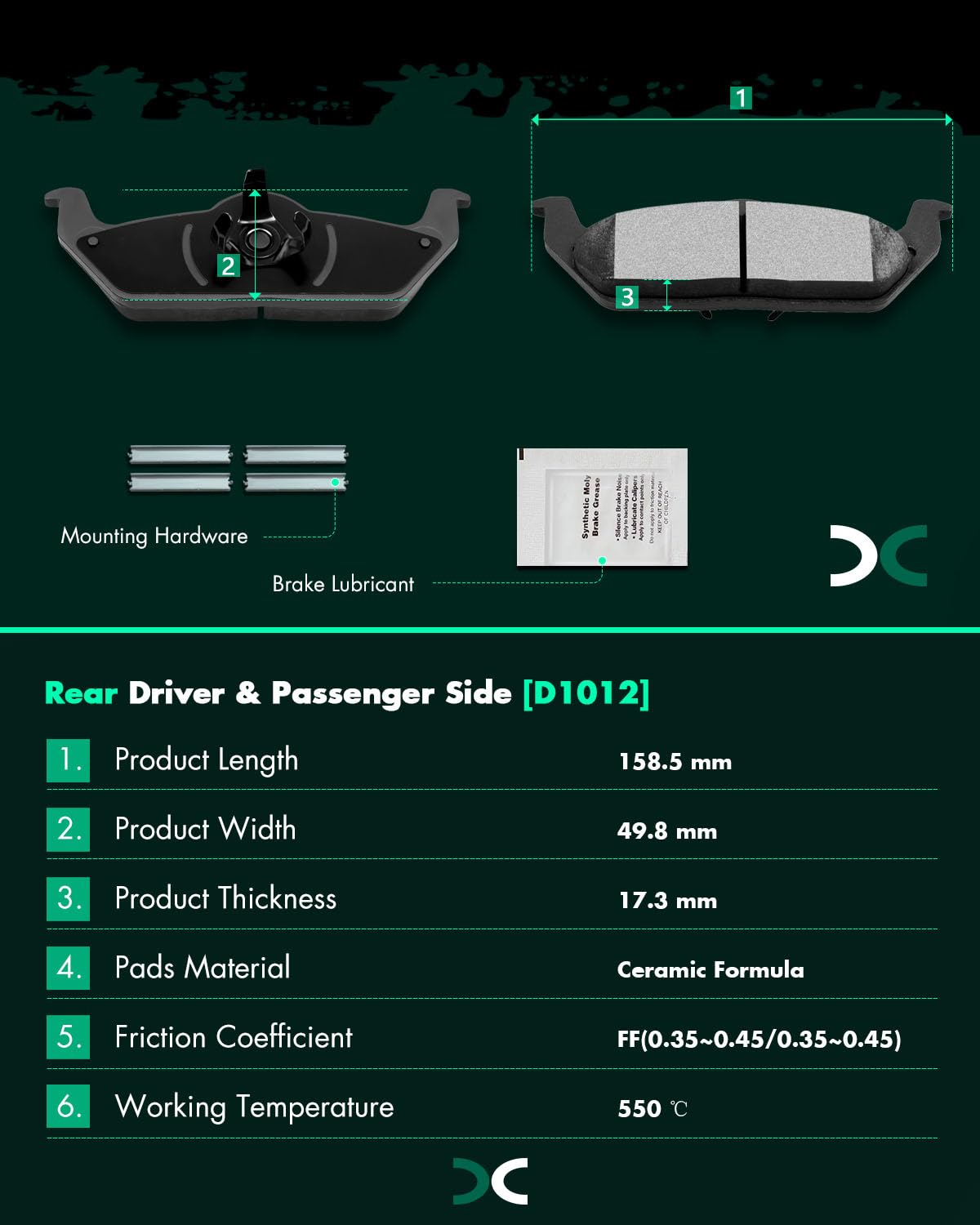 Scitoo D1012 Rear Ceramic Brake Pads Sets Fit For Ford For F-150 2004-2011,For Lincoln Mark Lt 2006-2008