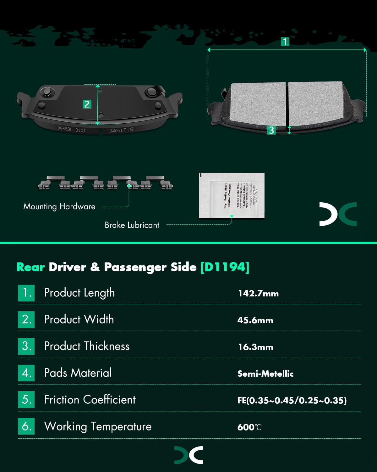 Scitoo D1092 D1194 Front Rear Semi-Metal Brake Pads Sets Fit For Cadillac Escalade Esv/Ext,For Chevy Avalanche/Silverado 1500 /