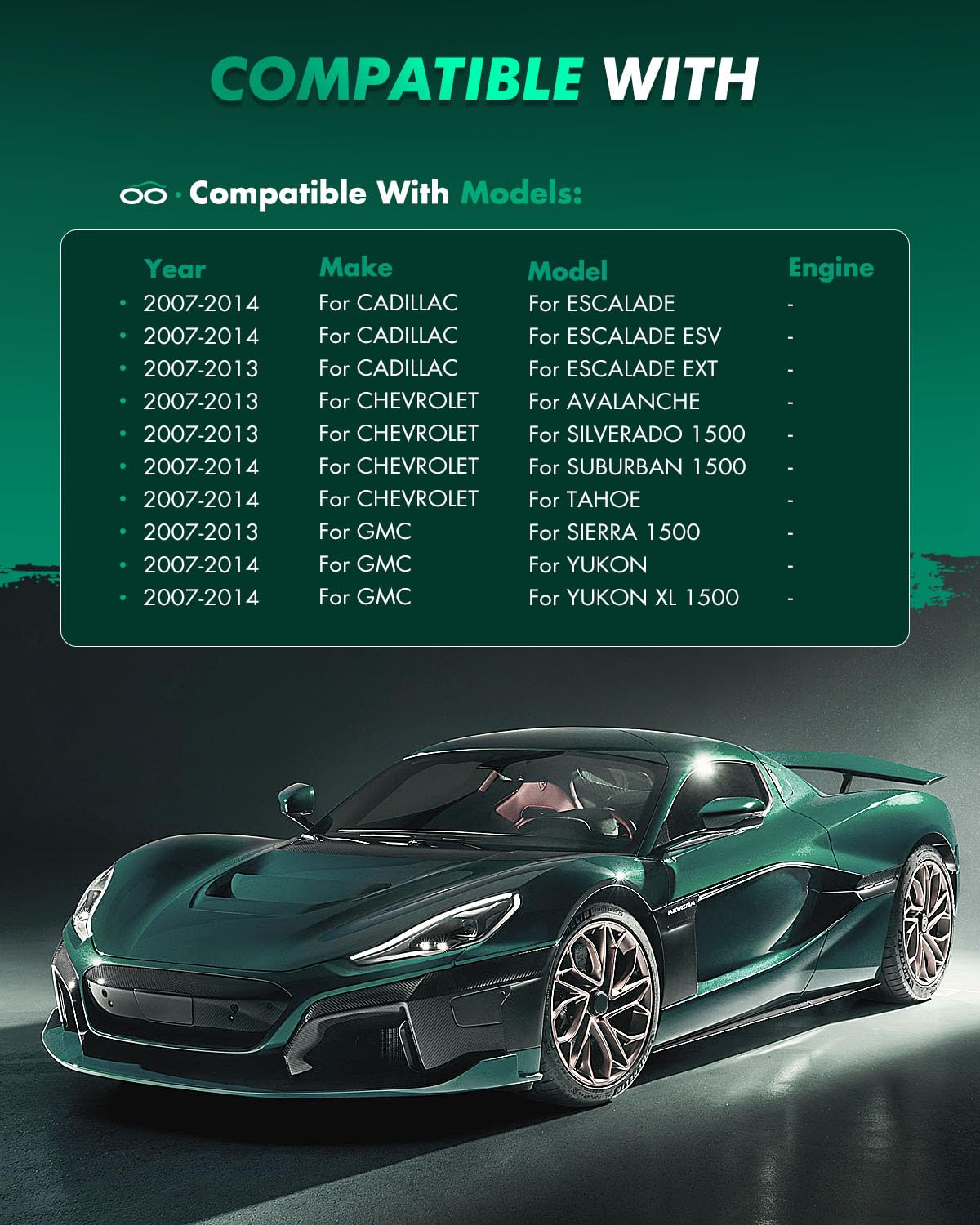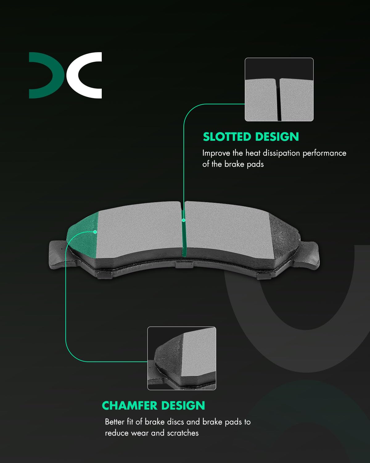 COMPATIBLE VEHICLES : 8PCS Brake Pads For Cadillac Escalade 2007-2014,For Cadillac Escalade ESV 2007-2014,For Cadillac Escalade EXT 2007-2013,For Chevrolet Avalanche 2007-2013,For Chevrolet Silverado 1500 2007-2013,For Chevrolet Suburban 1500 2007-2014,For Chevrolet Tahoe 2007-2014,For GMC Sierra 1500 2007-2013,For GMC Yukon 2007-2014,For GMC Yukon XL 1500 2007-2014 | Used For : The gasket serves as a buffer between the caliper piston and the brake pad back plate. They act to absorb vibrations,which will reduce noise | Brake Pads Feature : The pads with slotting design increases friction, heated evenly, heat faster,better ventilation, improves drainage.Ensure exceptional stopping power and quiet operation | Easy Installation : Manufactured to precise OE requirements to meet your car's needs.Designed to be integrated, easy to install and save time | BUYER NOTICE : Please check picture,part number and fitment information to verify if this is the correct one you need before purchasing
