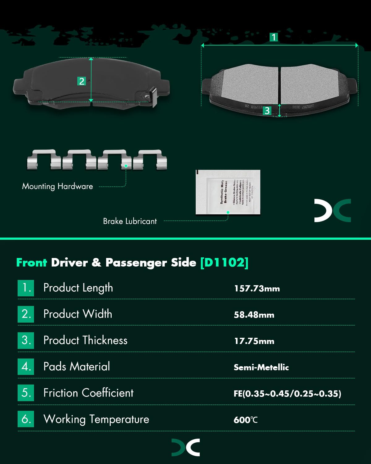 Scitoo D1102 Front Semi-Metal Brake Pads Sets Fit For Acura Tl 2009-2014,For Honda Ridgeline 2006-2011