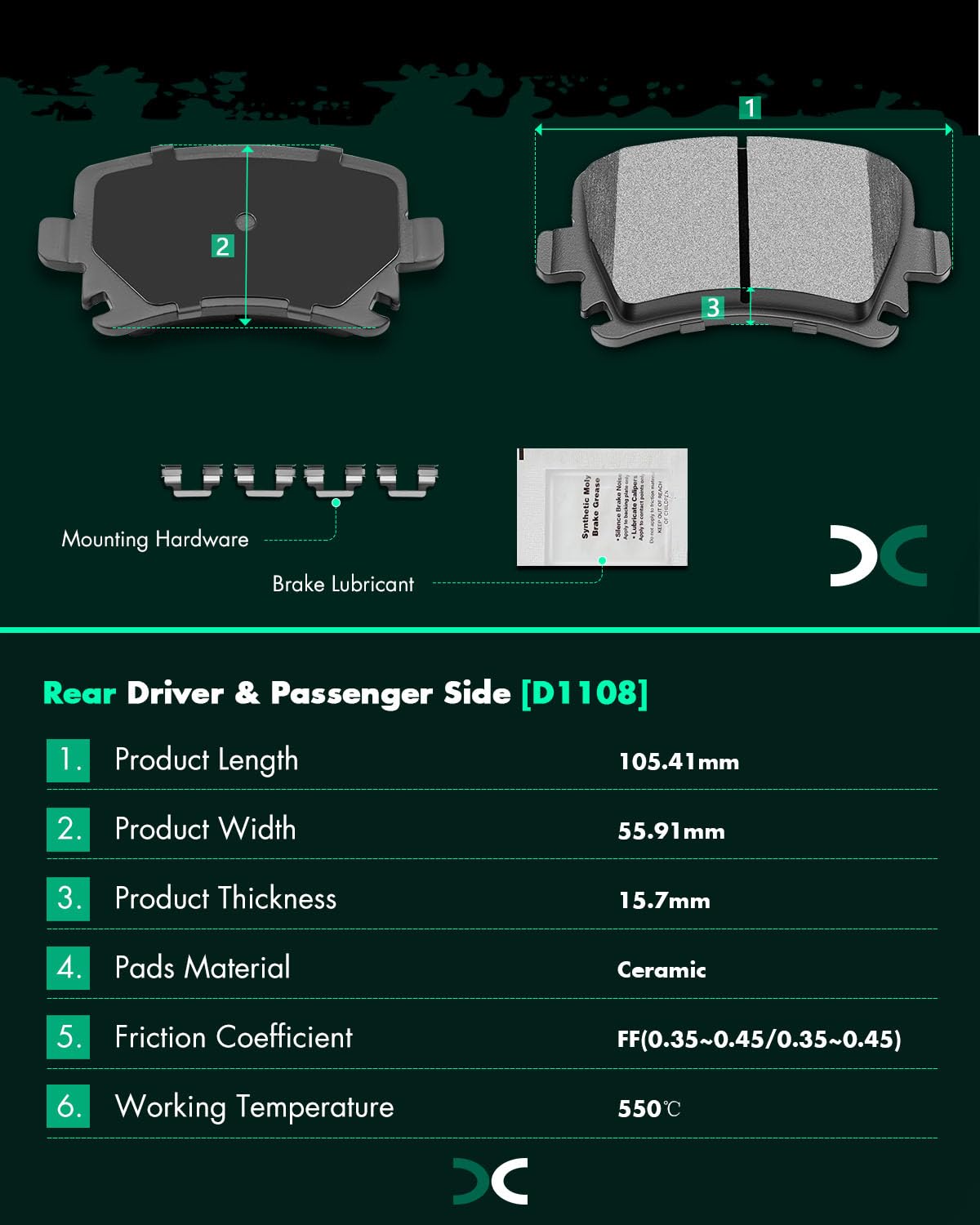 Scitoo D1108 Rear Ceramic Brake Pads Sets Fit For Audi A3/A3 Quattro/A4/A4 Quattro/A6/A6 Quattro/S6/Tt/Tt Quattro,For Vw Cc/For