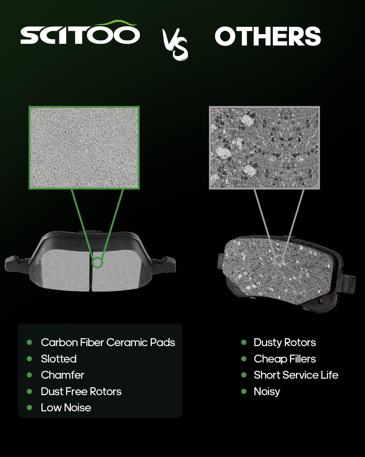 Scitoo D1111 Semi-Metal Brake Pads - Front Pads Set For Audi A4 (2001-2009), A4 Quattro (2005-2009), A6 (2005-2010), A6 Quattro
