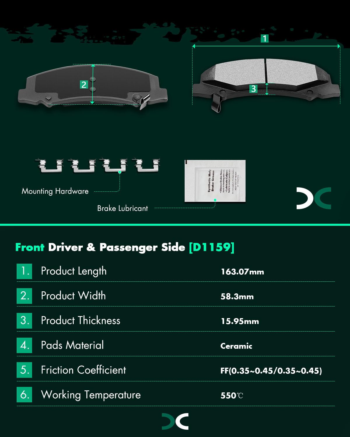 Scitoo D1159 D999 Front Ceramic Rear Semi-Metal Brake Pads Sets Fit For Chevrolet Impala 2011-2013,For Chevrolet Impala Limited