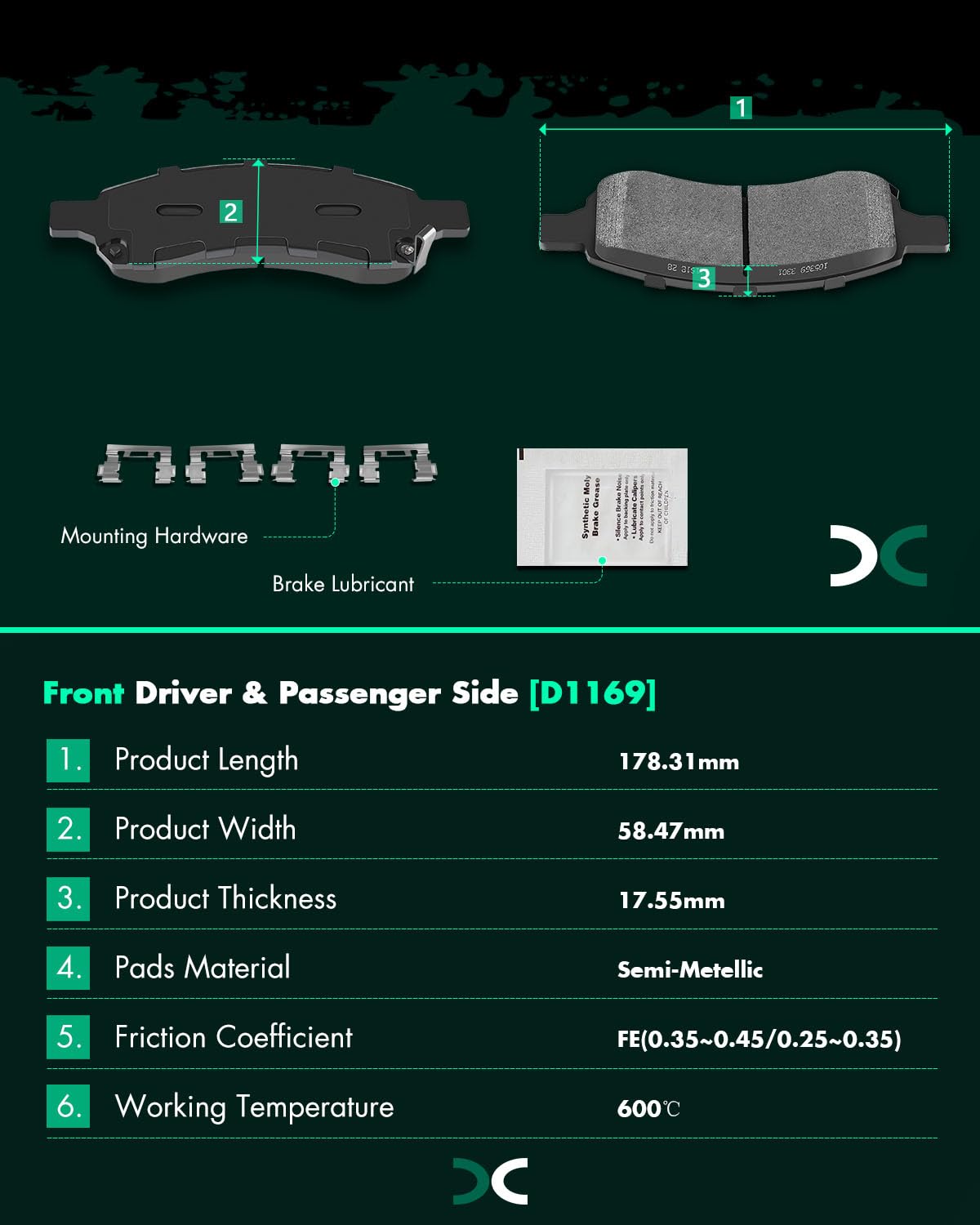 COMPATIBLE VEHICLES : 8PCS Brake Pads For Buick Enclave 4-Door 2008-2017,For Buick Rainier 4-Door 2006 2007,For Chevy SSR 2-Door 2006,For Chevy Trailblazer 4-Door 2006-2009,For Chevy Trailblazer EXT 4-Door 2006,For Chevy Traverse 4-Door 2009-2017,For GMC Acadia 4-Door 2007-2016,For GMC Envoy 4-Door 2006 2007 2008 2009,For GMC Envoy XL 4-Door 2006,For Isuzu Ascender 4-Door 2007 2008,For Saab 9-7x 4-Door 2006 2007 2008 2009,For Saturn Outlook 4-Door 2007 2008 2009 2010 | Used For : The gasket serves as a buffer between the caliper piston and the brake pad back plate. They act to absorb vibrations,which will reduce noise | Brake Pads Feature : The pads with slotting design increases friction, heated evenly, heat faster,better ventilation, improves drainage.Ensure exceptional stopping power and quiet operation | Easy Installation : Manufactured to precise OE requirements to meet your car's needs.Designed to be integrated, easy to install and save time | BUYER NOTICE : Please check picture,part number and fitment information to verify if this is the correct one you need before purchasing