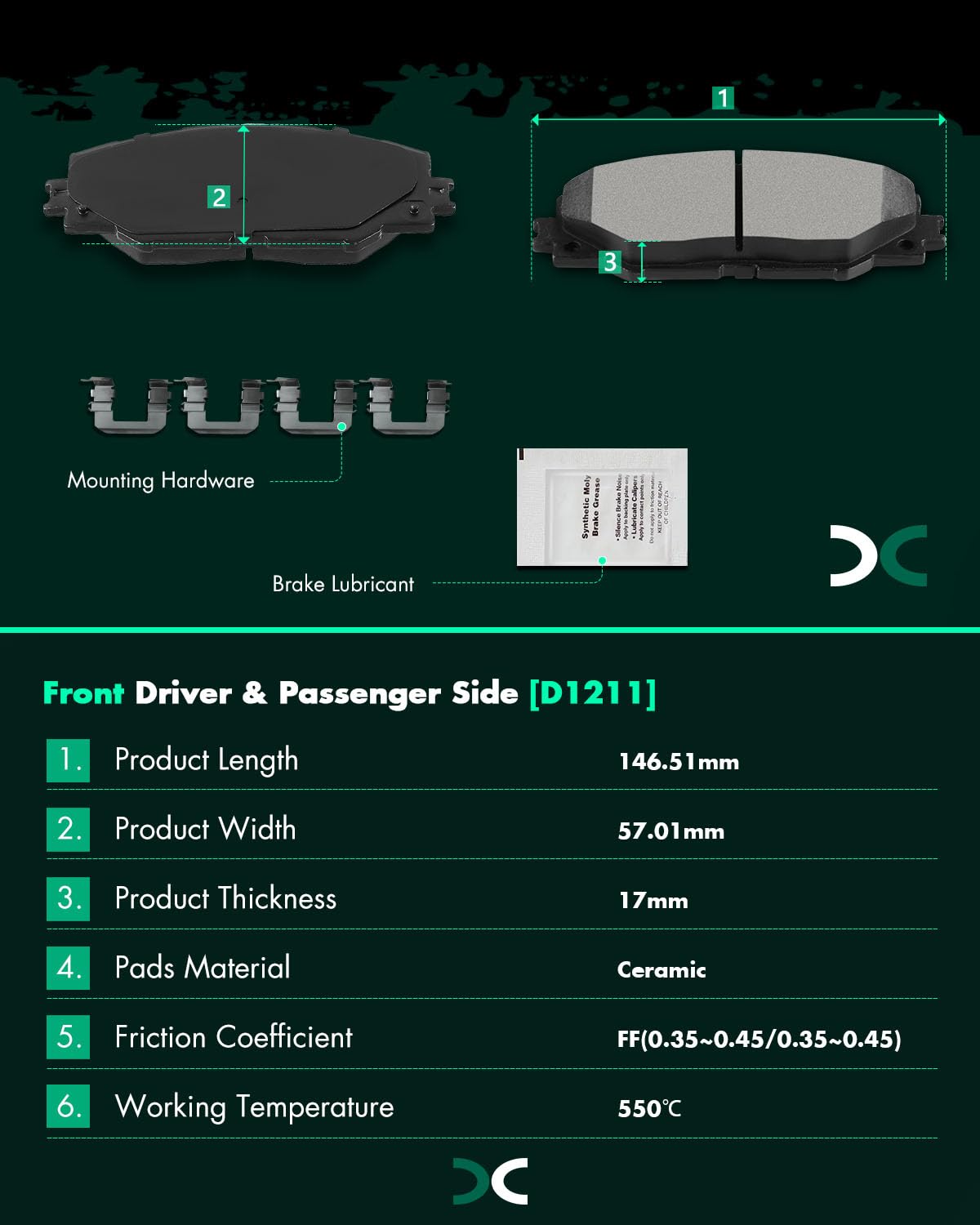 Scitoo D1211 D1212 Front Rear Ceramic Brake Pads Sets Fit For Pontiac Vibe 2009-2010,For Toyota Matrix 2009-2013,For Toyota For