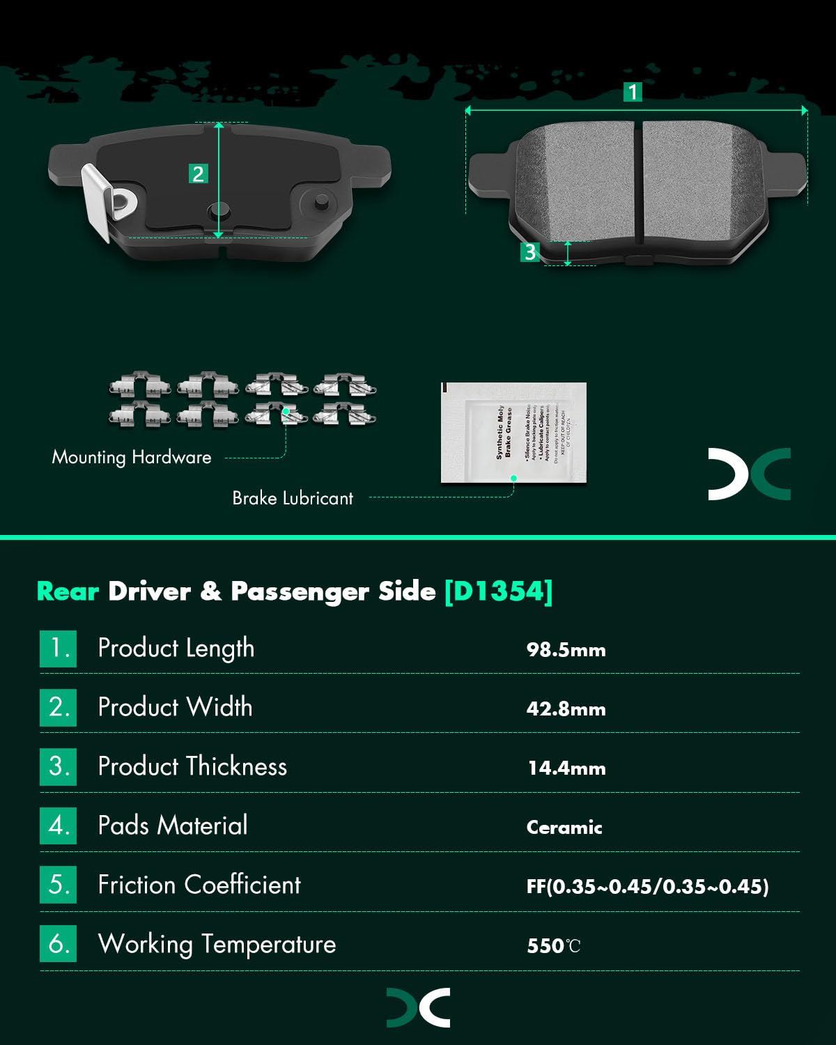 Scitoo D1211 D1354 Front Rear Ceramic Brake Pads Sets Fit For Pontiac Vibe 2009-2010,For Scion Im 2016,For Scion Tc 2011-2016,Fo